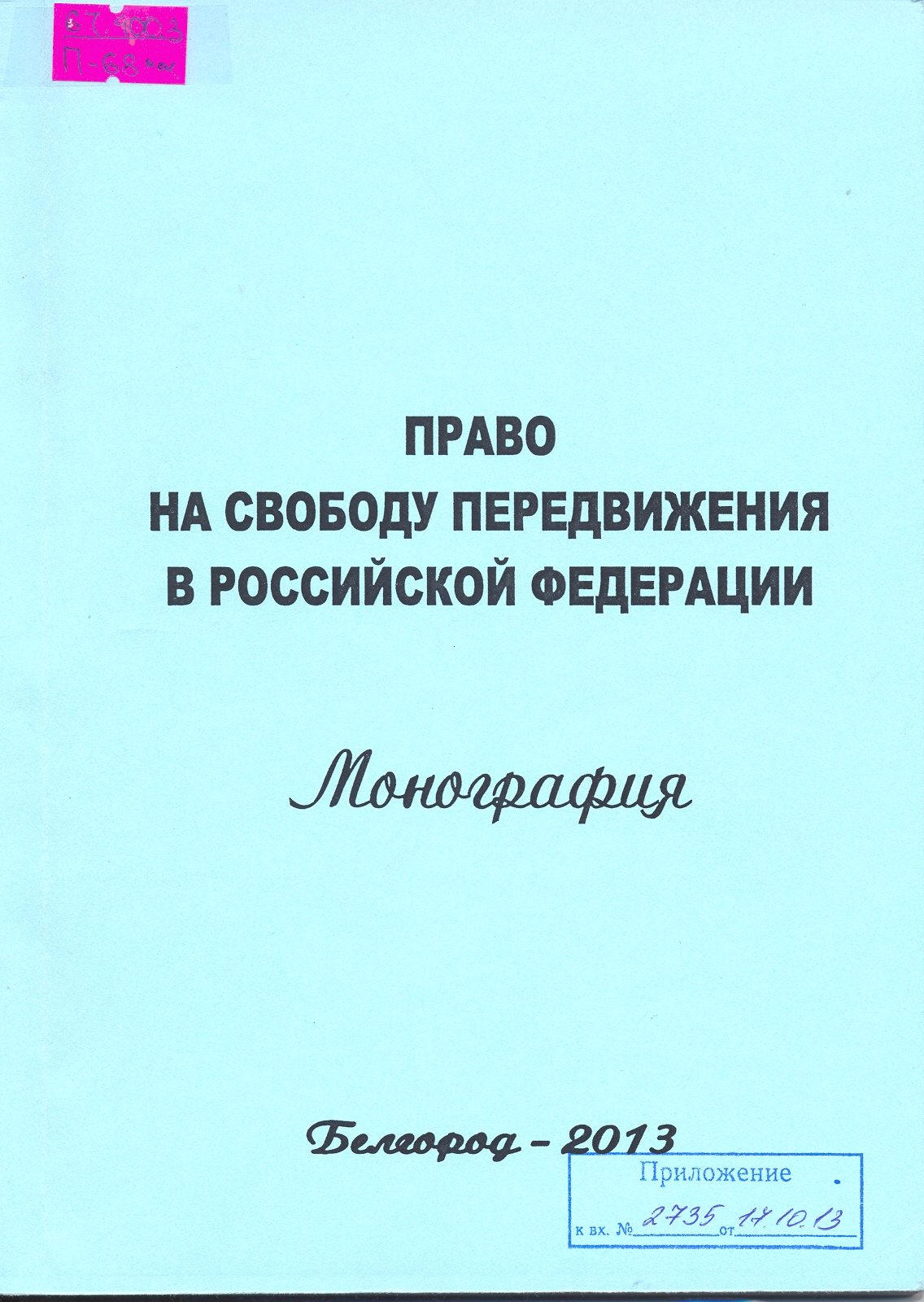 Право на свободу передвижения в Российской Федерации: монография