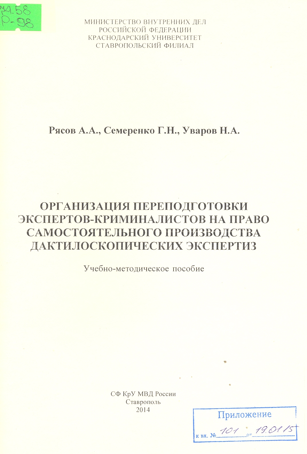 Организация переподготовки экспертов-криминалистов на право самостоятельного производства дактило...: учебно-методическое пособие