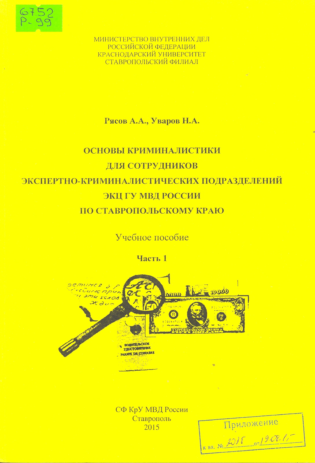 Основы криминалистики для сотрудников экспертно-криминалистических подразделений ЭКЦ ГУ МВД Росси...: учебное пособие