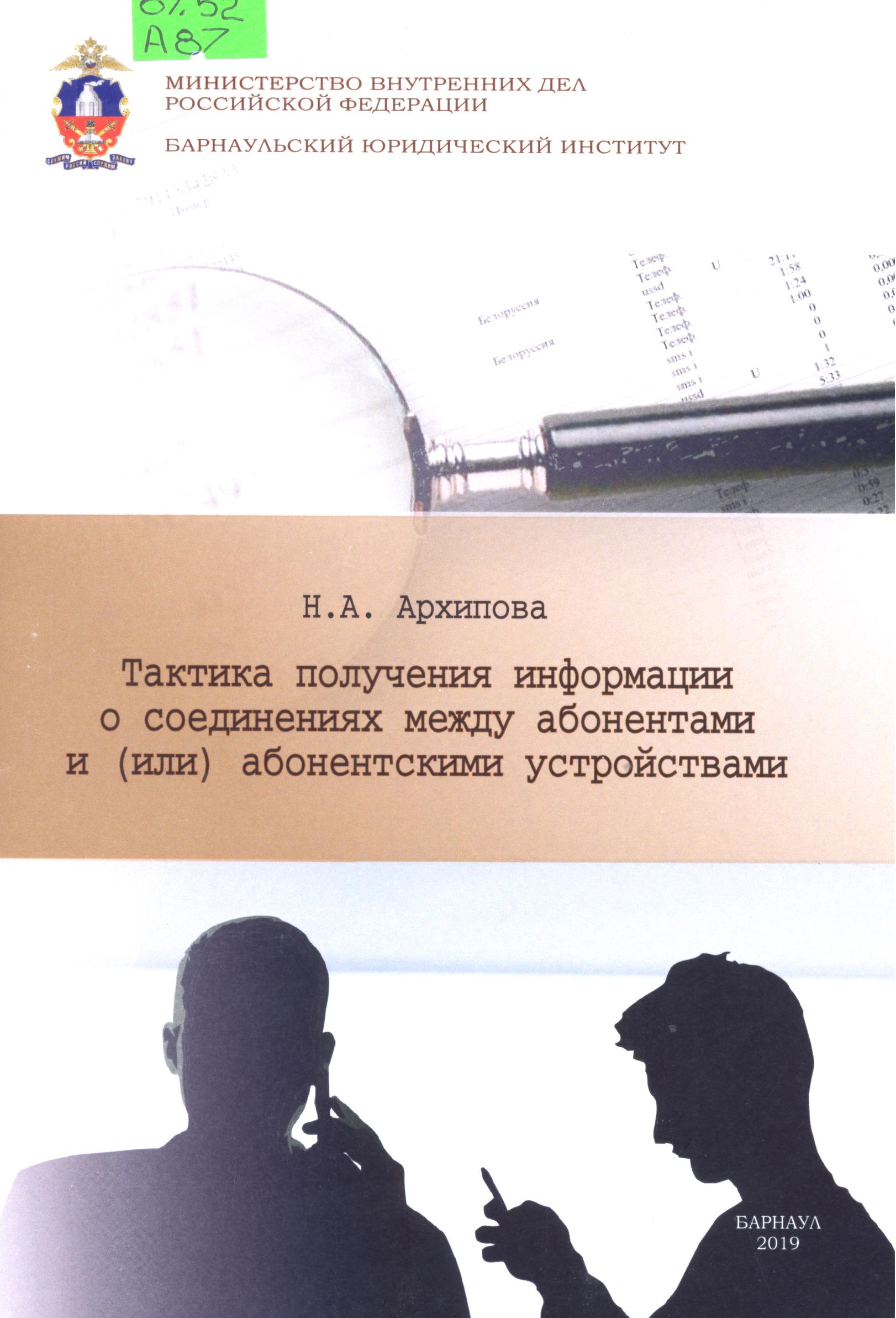 Тактика получения информации о соединениях между абонентами и (или) абонентскими устройствами: учебное пособие