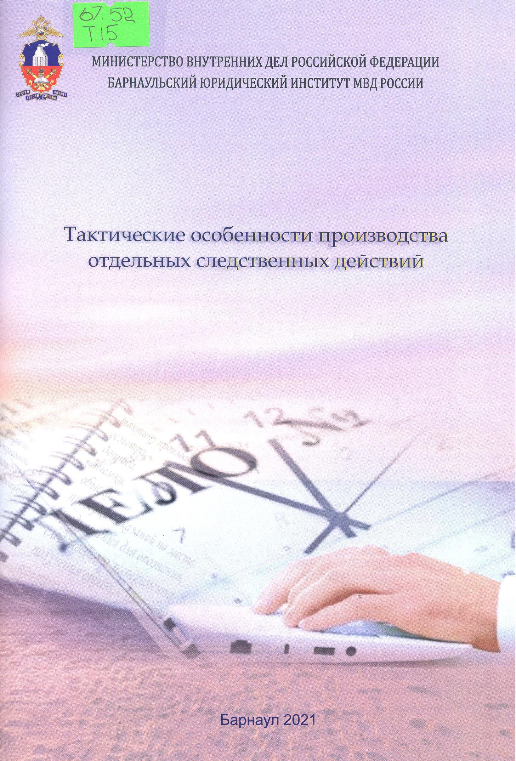 Тактические особенности производства отдельных следственных действий: учебное пособие
