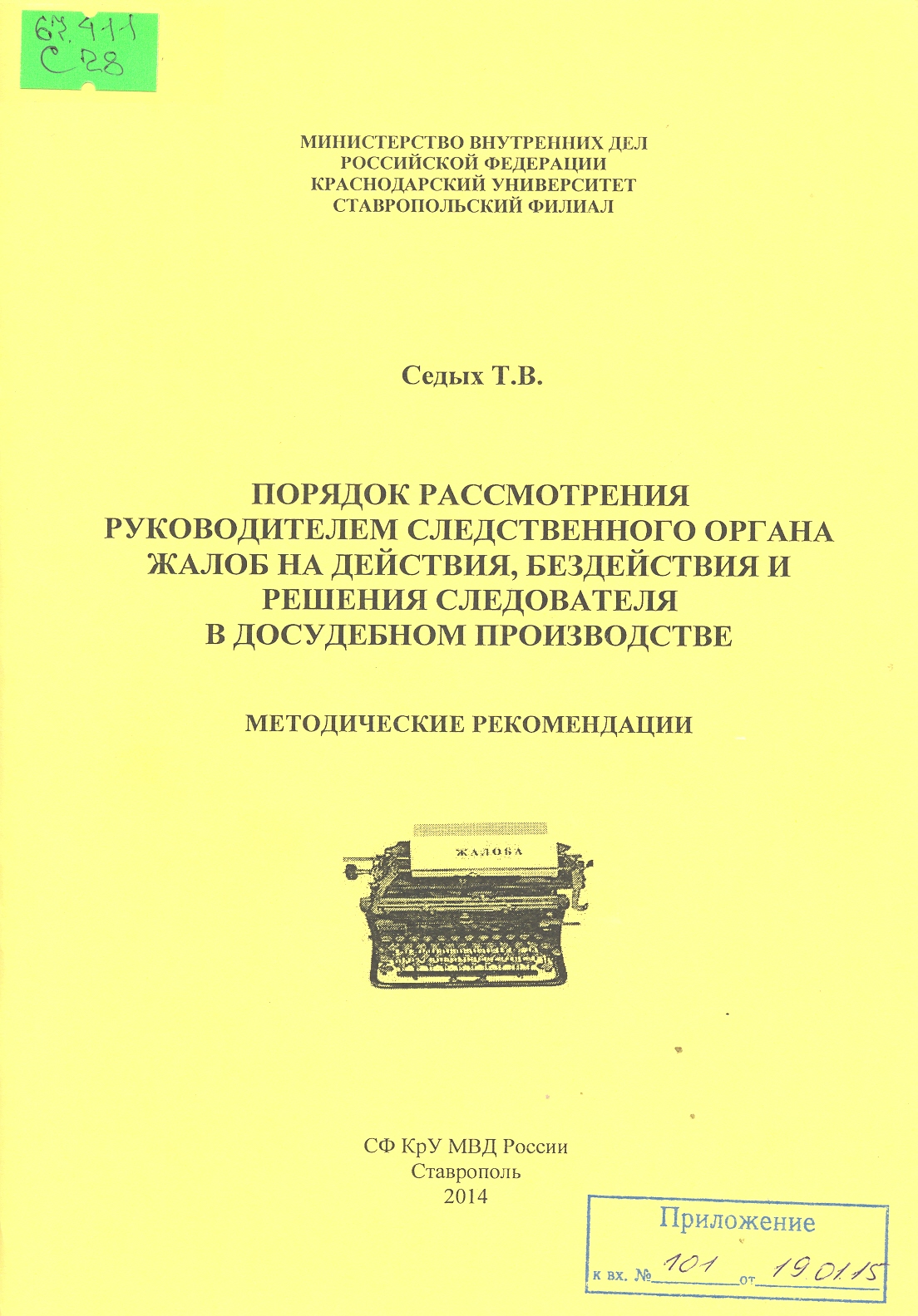 Порядок рассмотрения руководителем следственного органа жалоб на действия, бездействия и решения ...: методические рекомендации