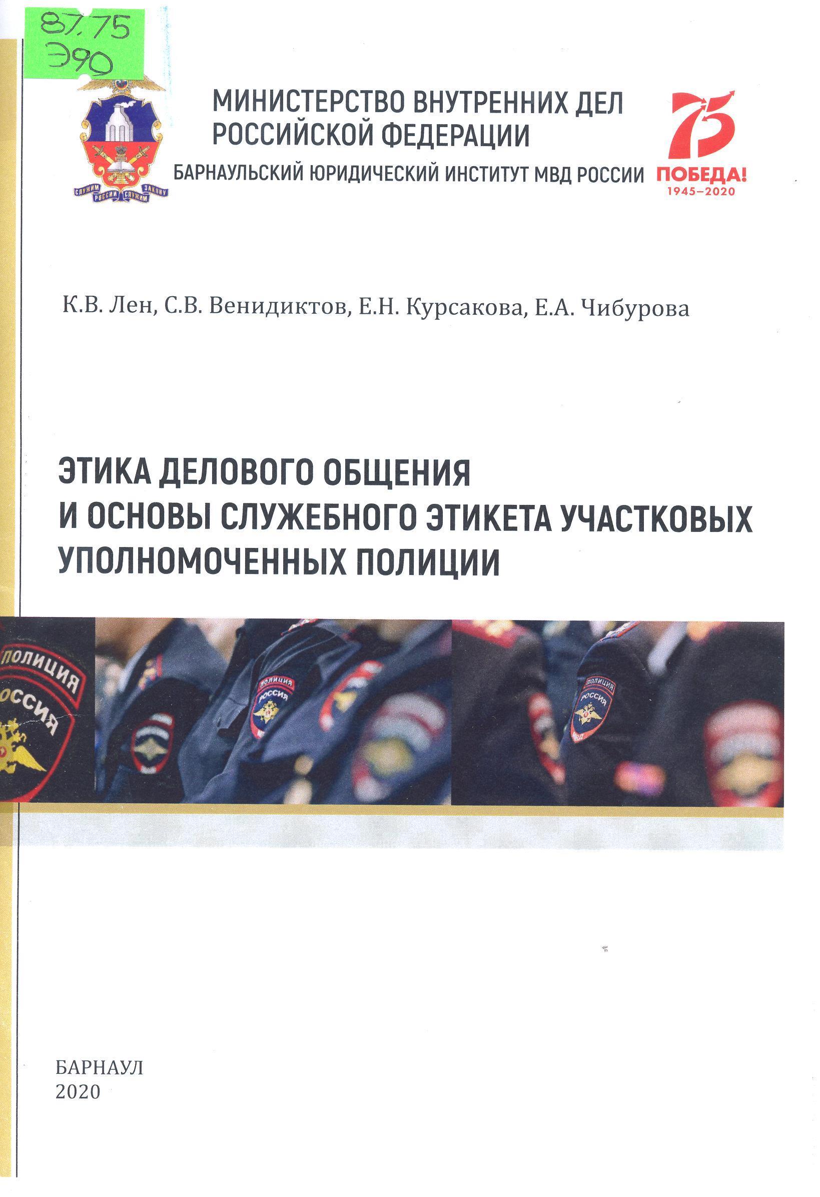 Этика делового общения и основы служебного этикета участковых уполномоченных полиции: учебное пособие