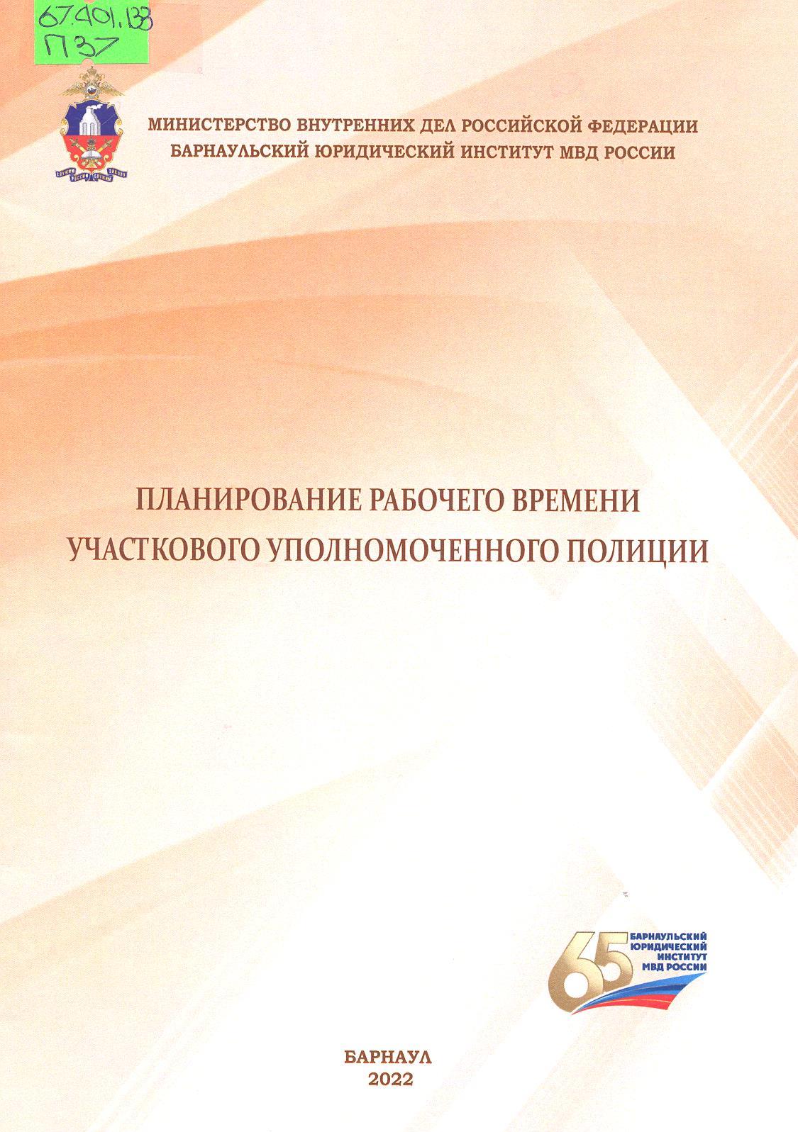 Планирование рабочего времени участкового уполномоченного полиции: методические рекомендации