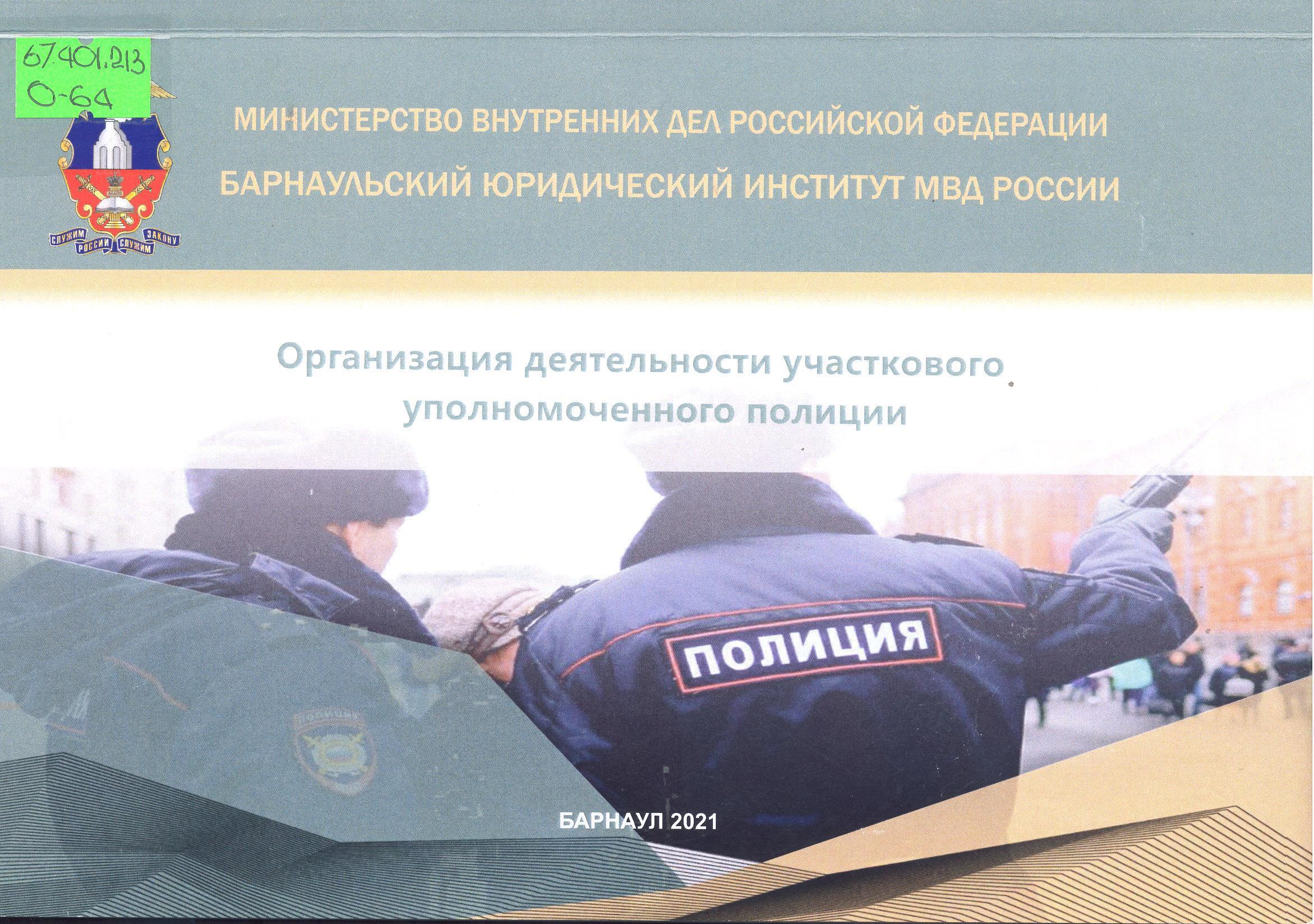 Организация деятельности участкового уполномоченного полиции: учебно-методическое пособие