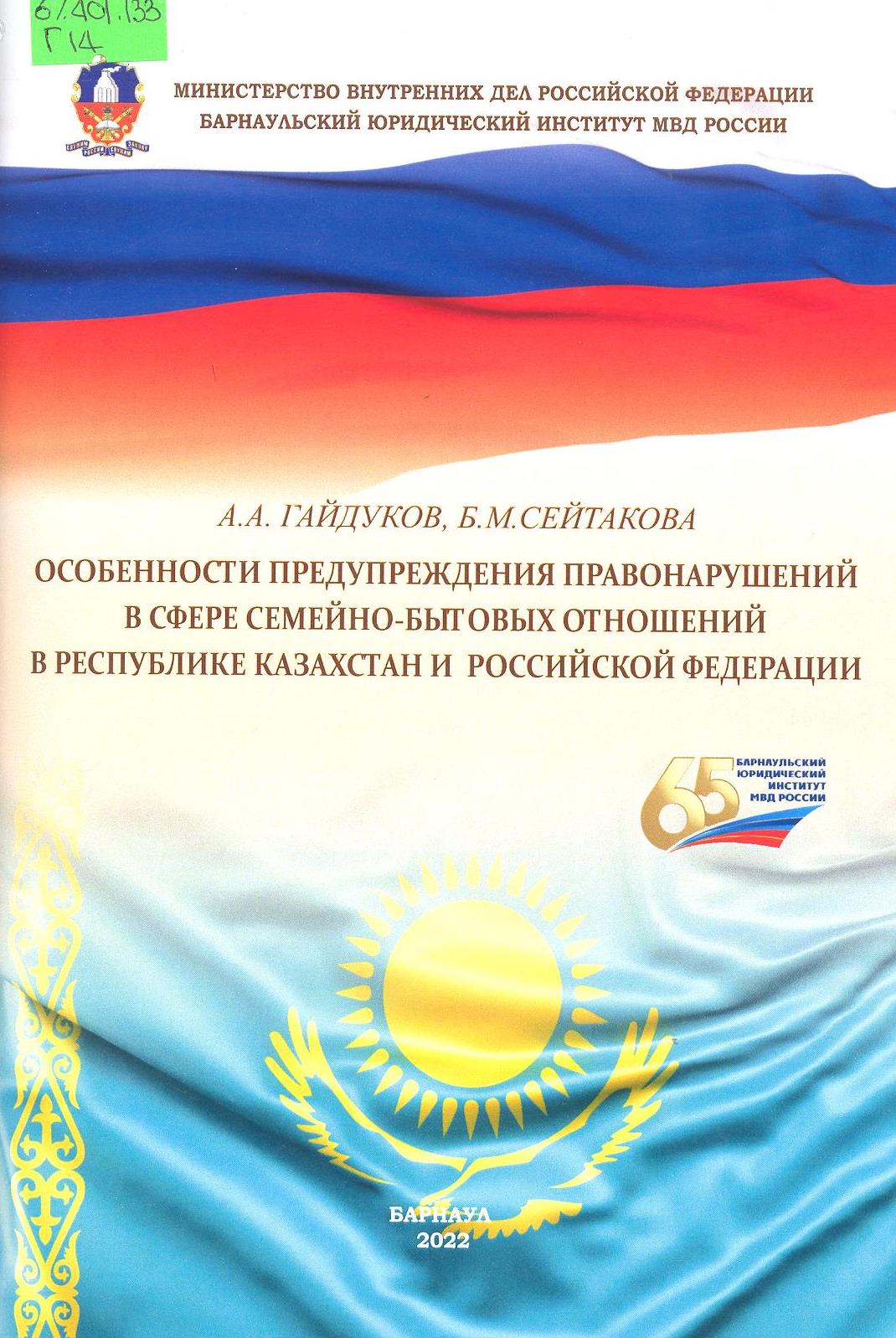 Особенности предупреждения правонарушений в сфере семейно-бытовых отношений в Республике Казахста...: учебное пособие