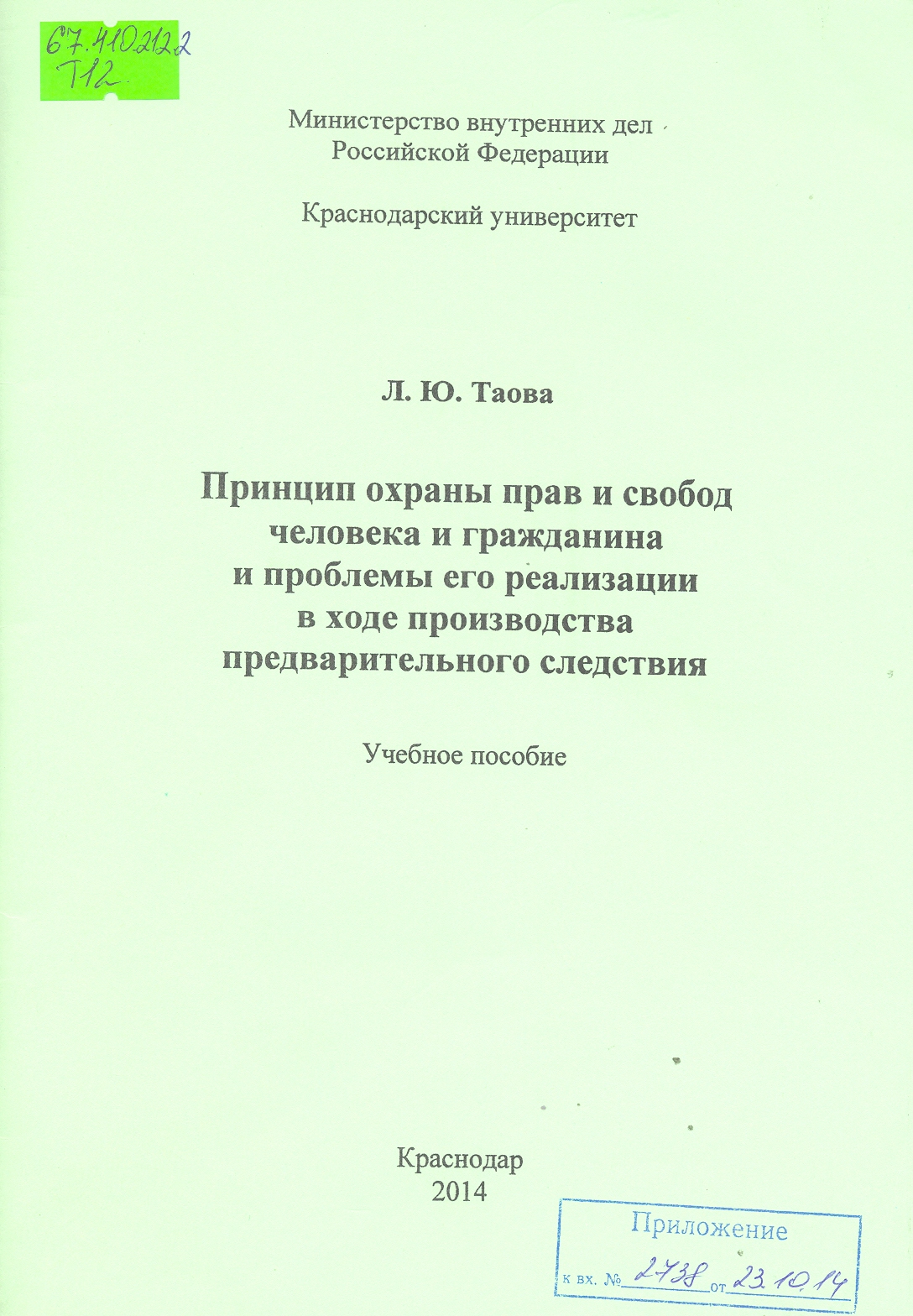 Принцип охраны прав и свобод человека и гражданина и проблемы его реализации в ходе производства ...: учебное пособие