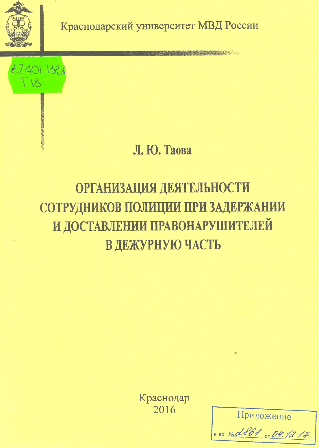 Организация деятельности сотрудников полиции при задержании и доставлении правонарушителей в дежу...: учебное пособие