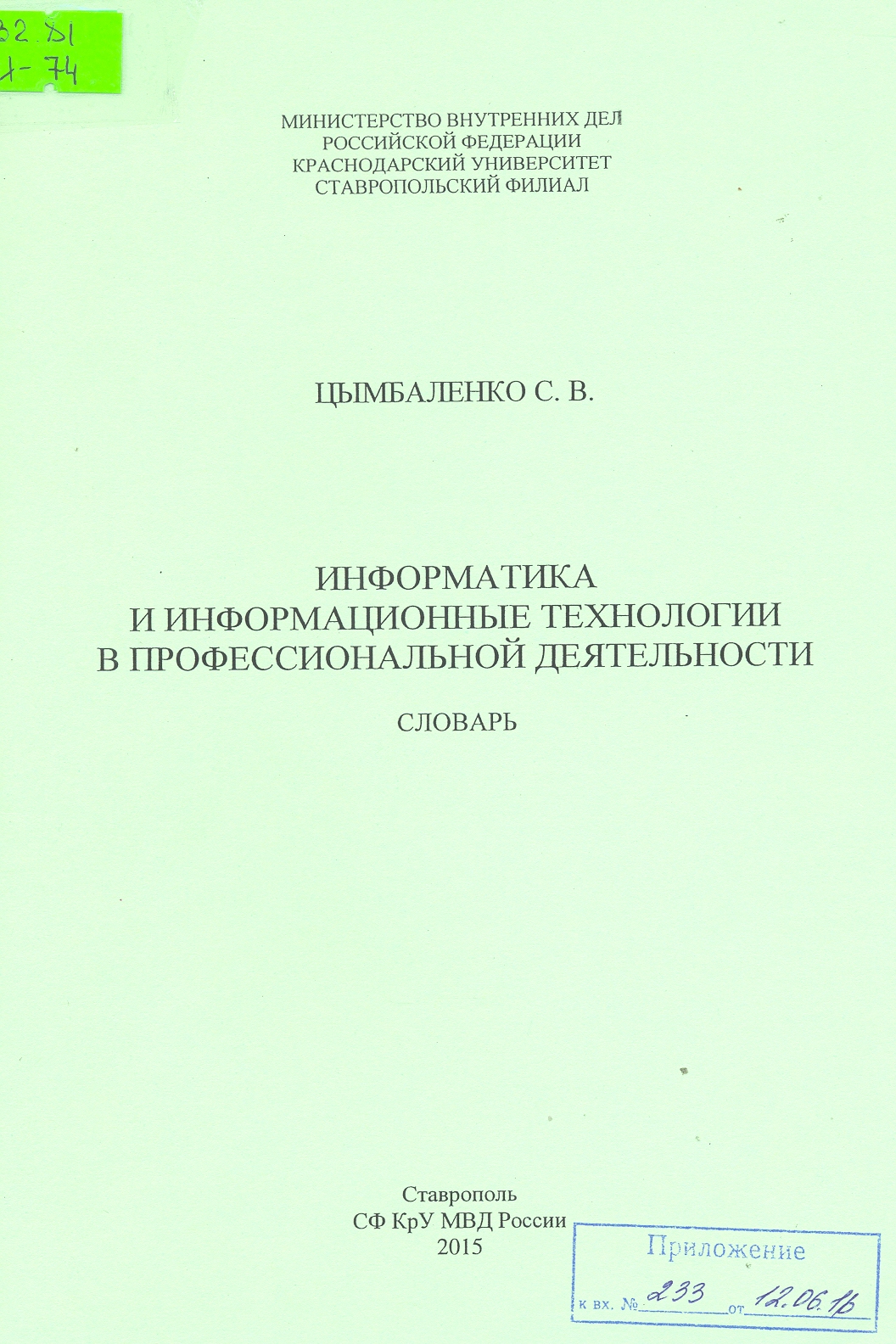 Ставропольский филиал Краснодарского университета МВД России (СФ КрУ МВД России), 2015 г.