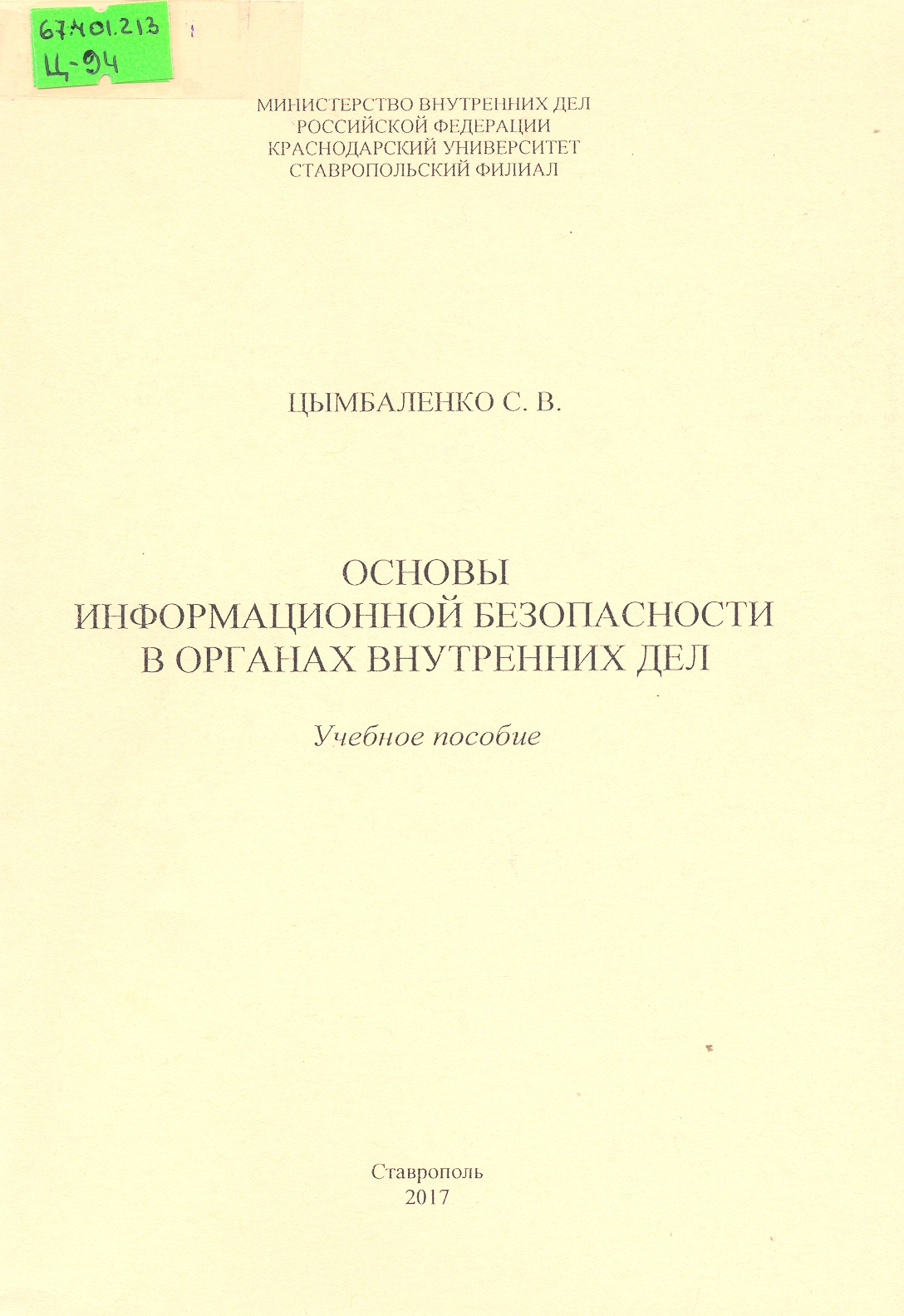 Основы информационной безопасности в органах внутренних дел: учебное пособие