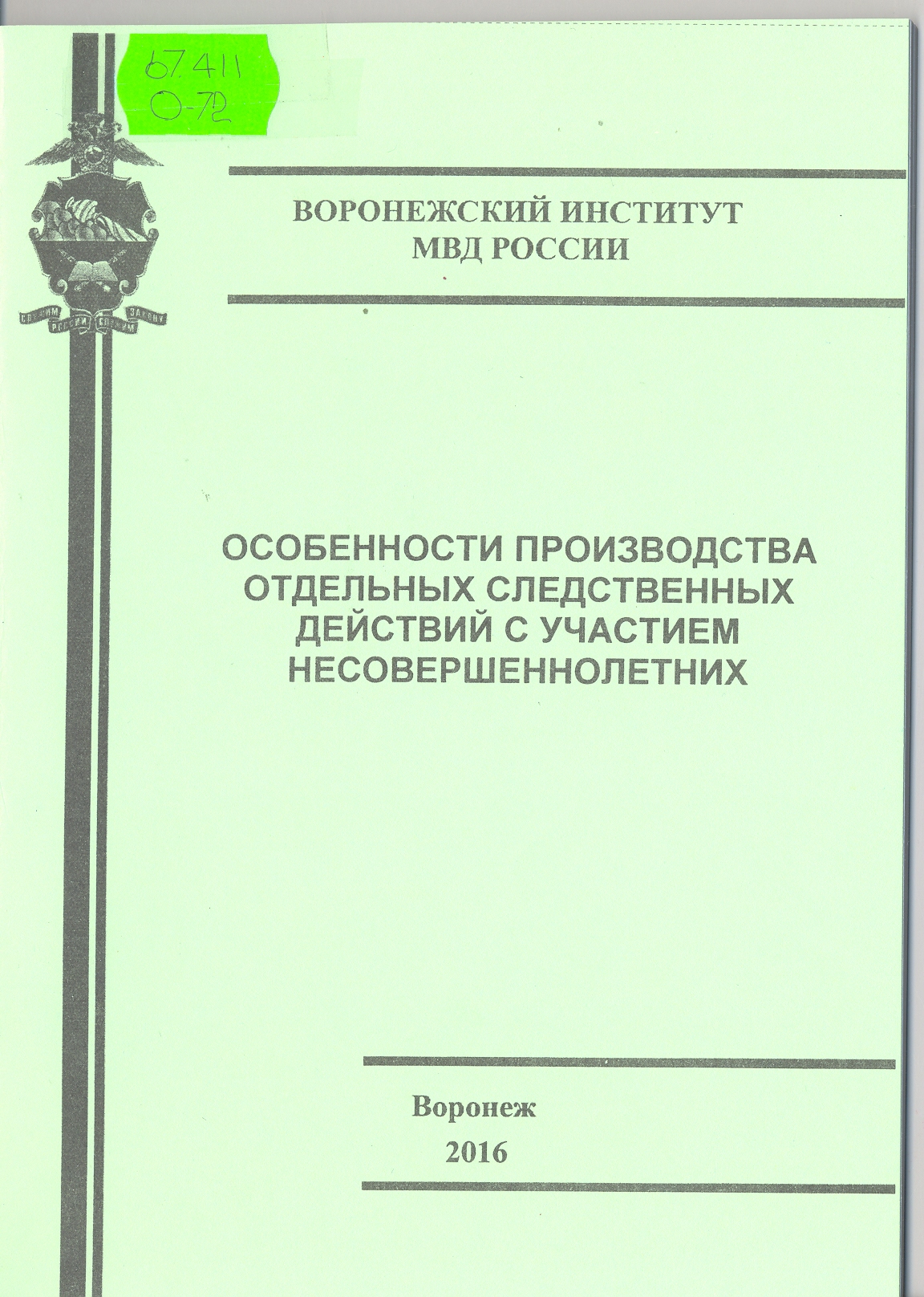 Особенности производства отдельных следственных действий с участием несовершеннолетних: учебное пособие