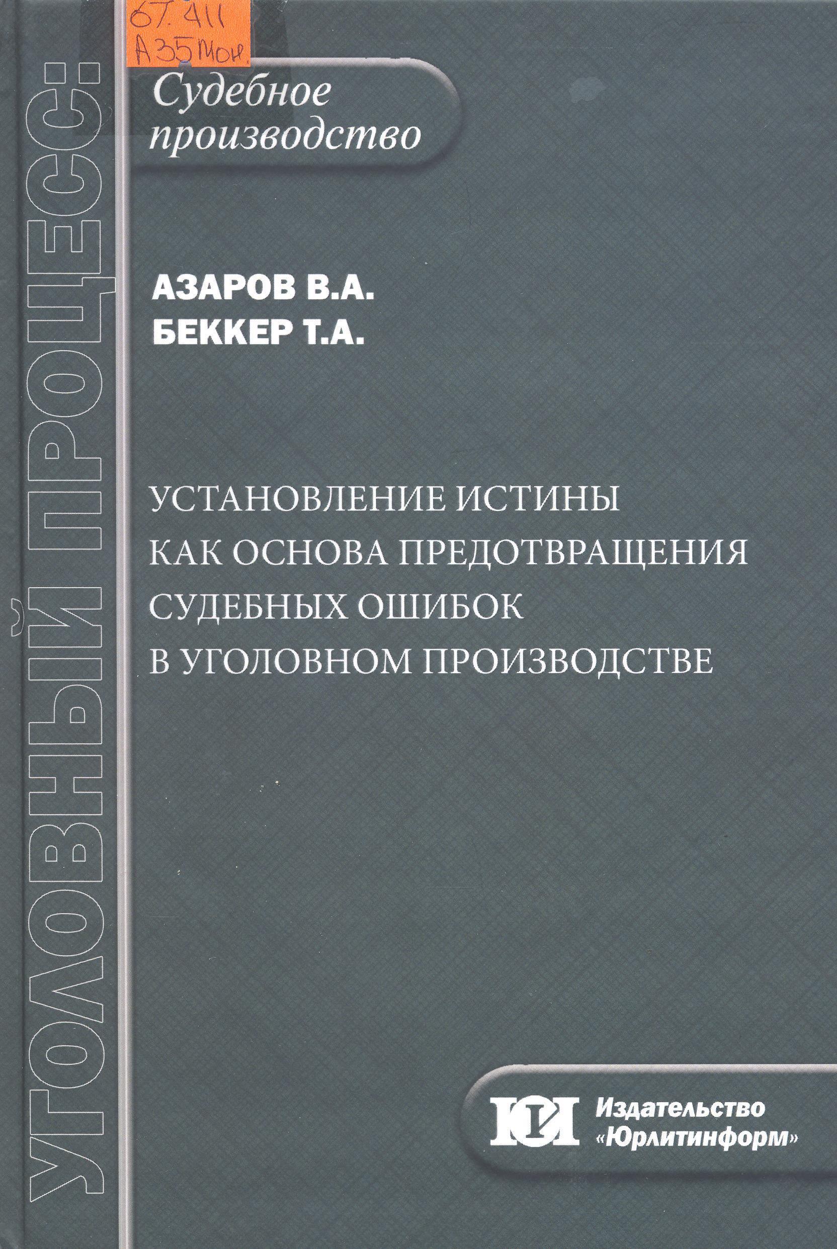 Установление истины как основа предотвращения судебных ошибок в уголовном производстве: монография