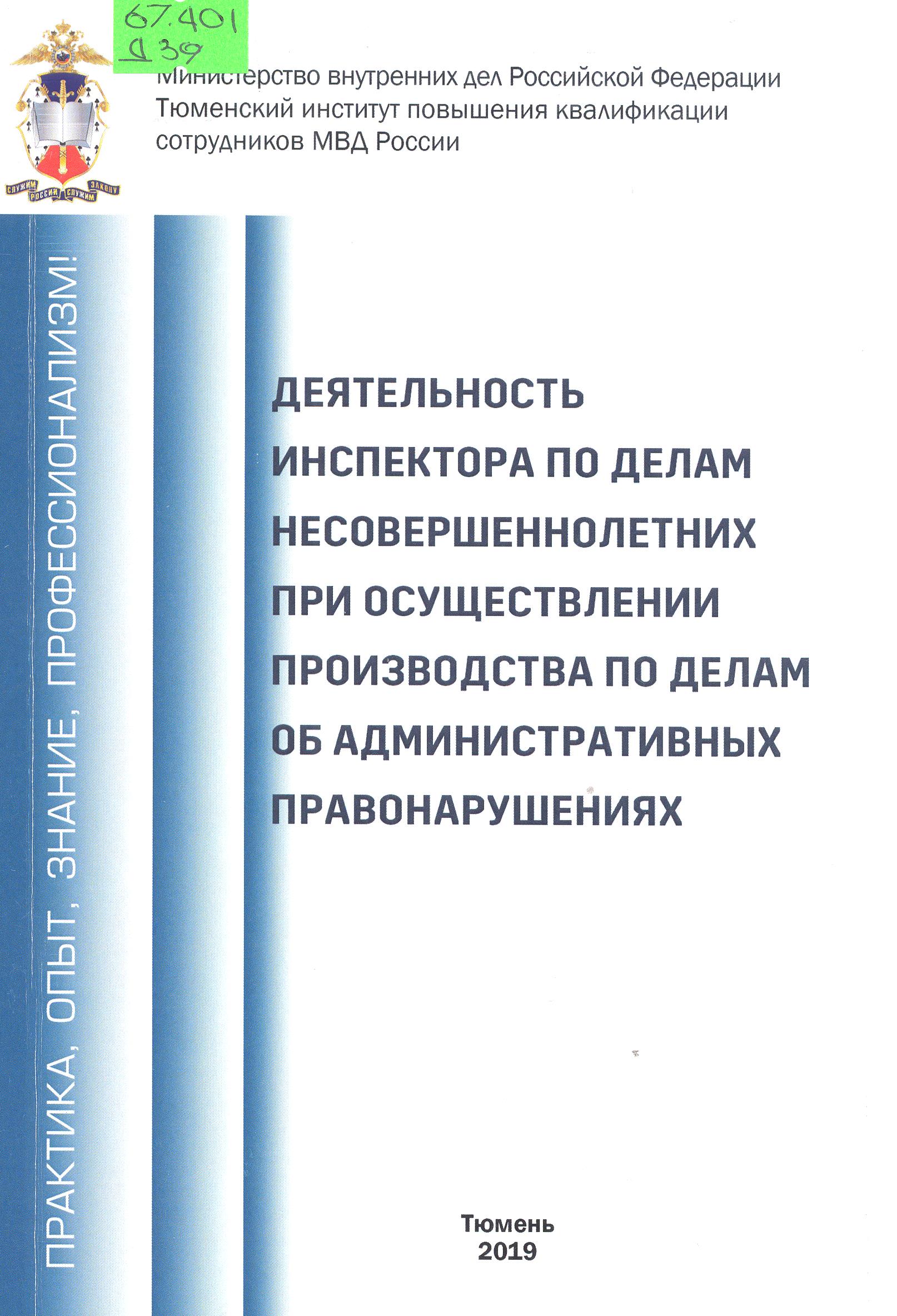 Деятельность инспектора по делам несовершеннолетних при осуществлении производства по делам об ад...: учебно-практическое пособие