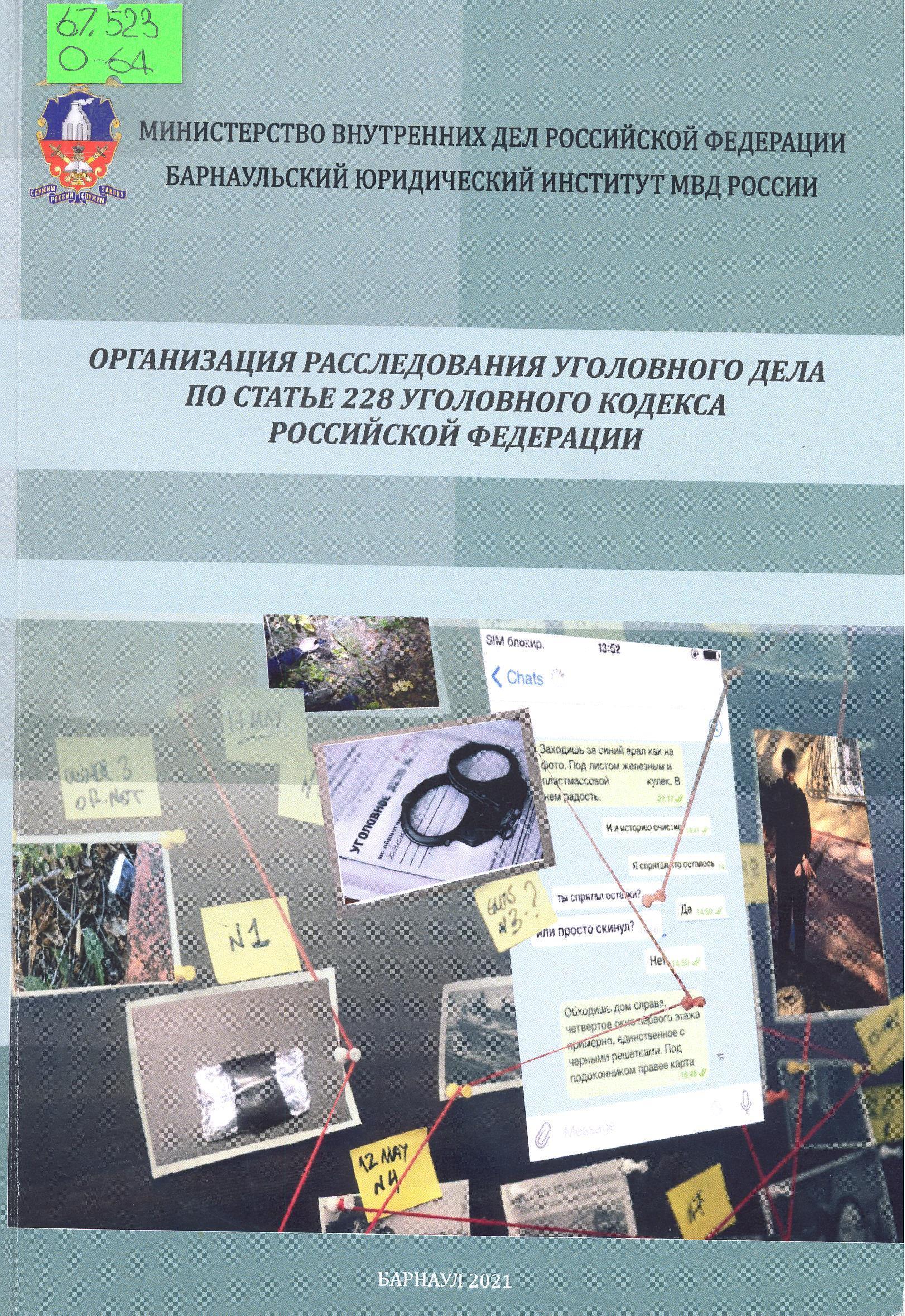 Организация расследования уголовного дела по статье 228 Уголовного кодекса Российской Федерации: учебно-практическое пособие