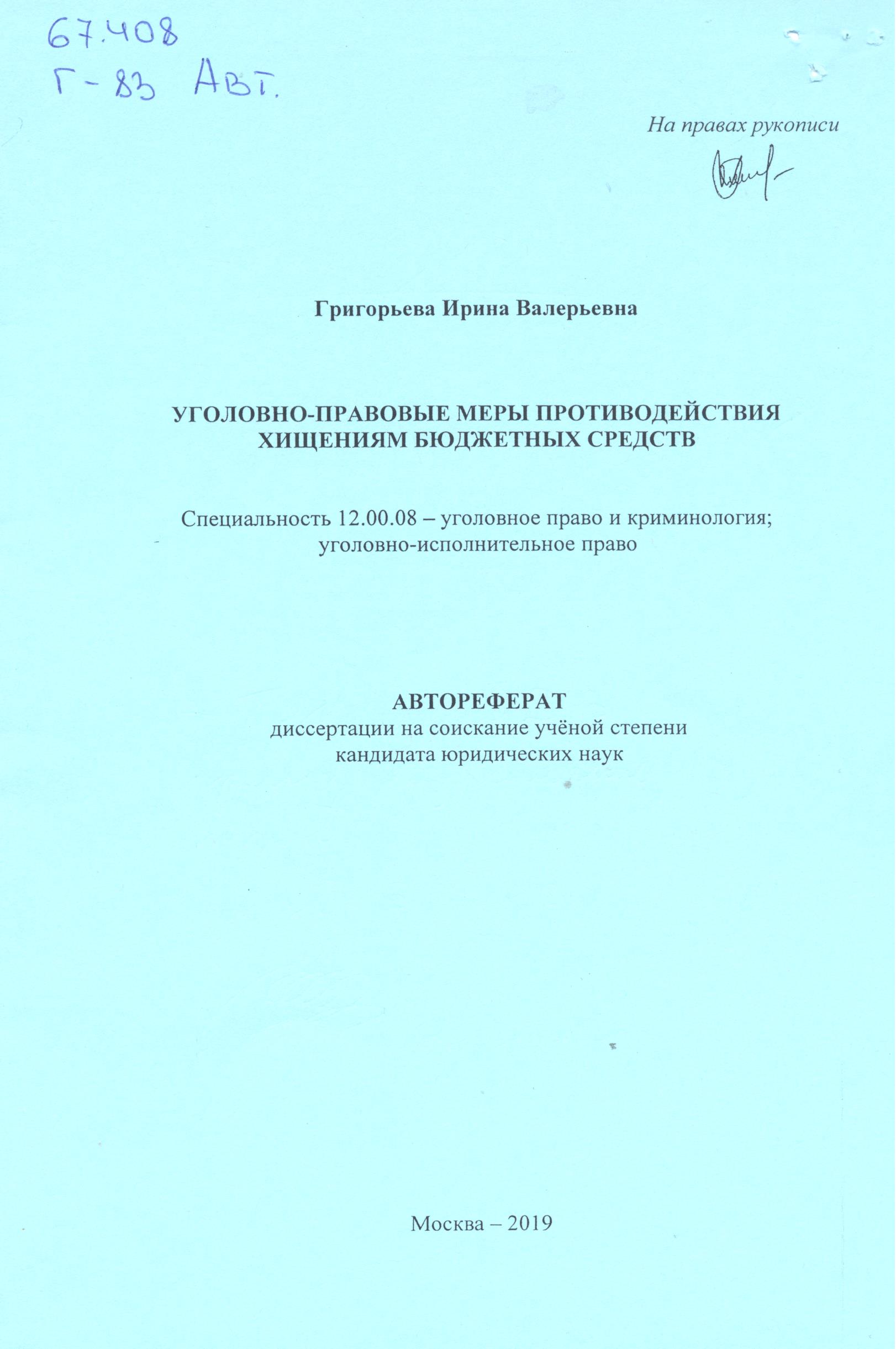 Уголовно-правовые меры противодействия хищениям бюджетных средств: автореферат: 12.00.08