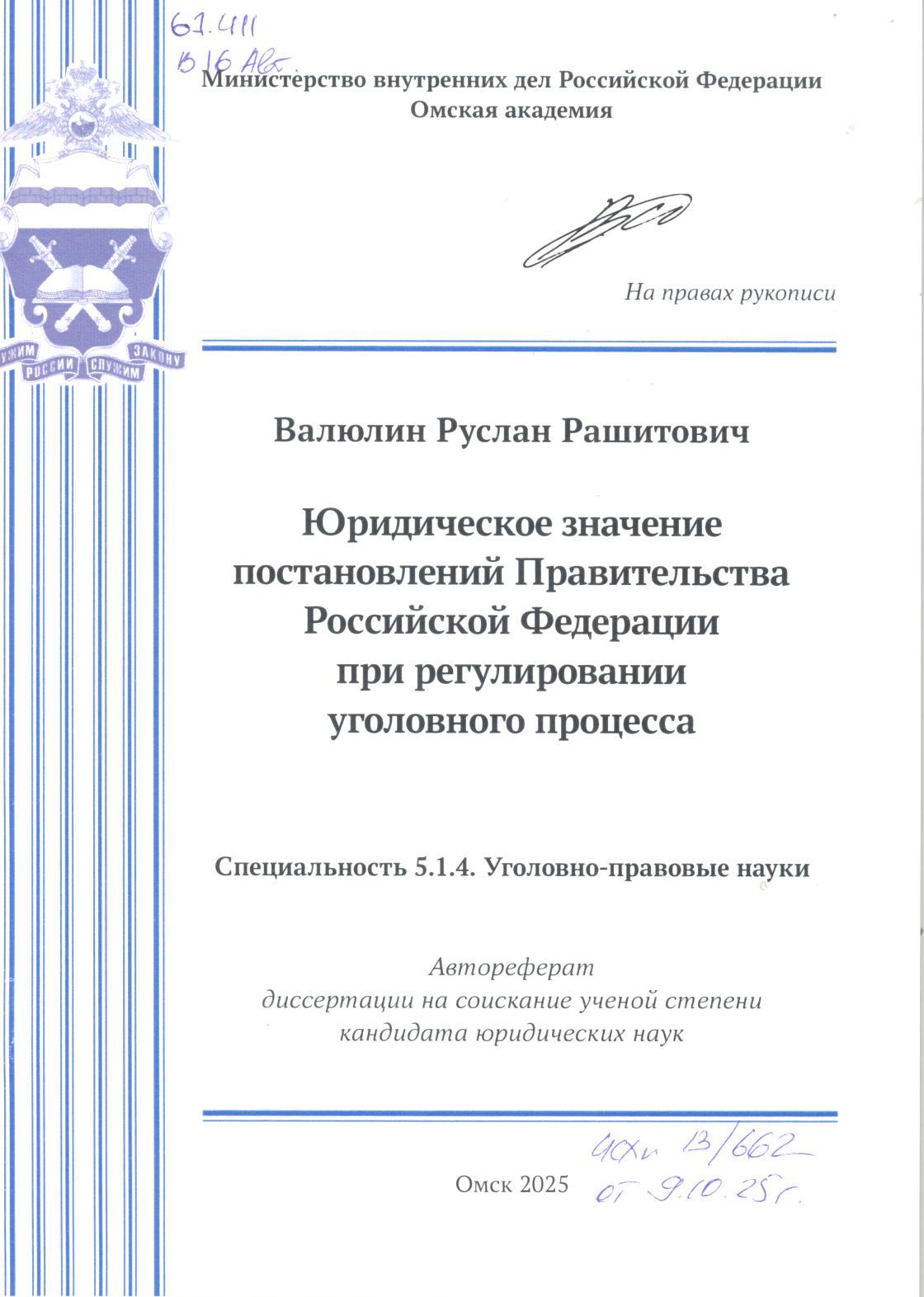 Юридическое значение постановлений Правительства Российской Федерации при регулировании Уголовног...: автореферат диссертации на соискание ученой степени кандидата юридических наук