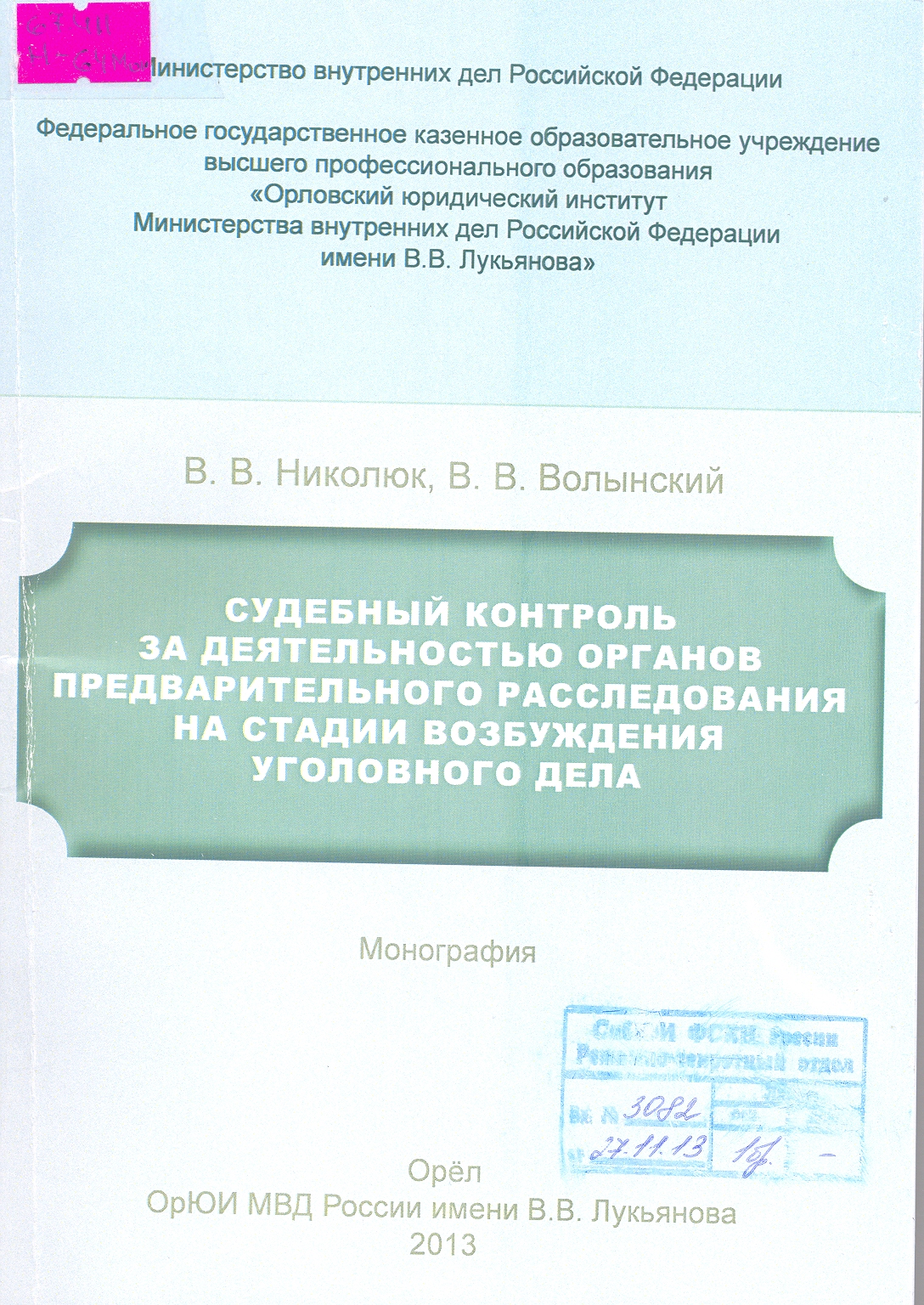 Орловский юридический институт МВД России (ОрЮИ МВД России), 2013 г.
