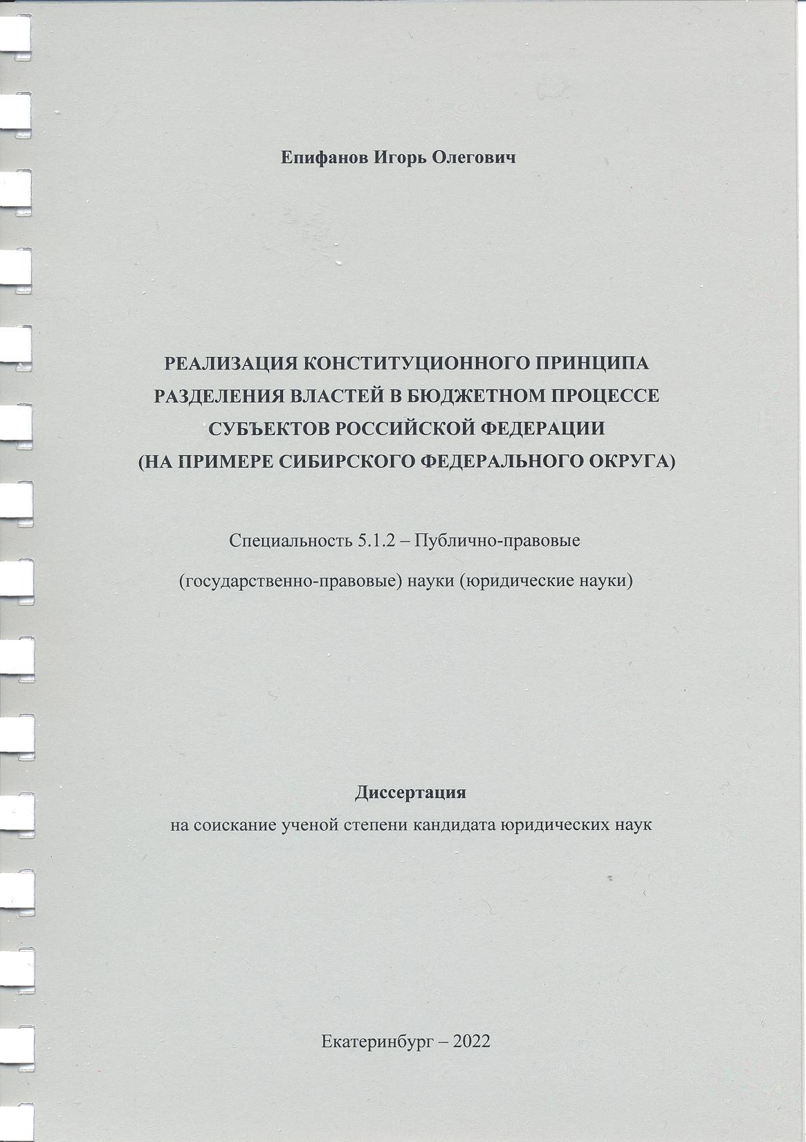 Реализация конституционного принципа разделения властей в бюджетном процессе субъектов Российской...: диссертация 5.1.2