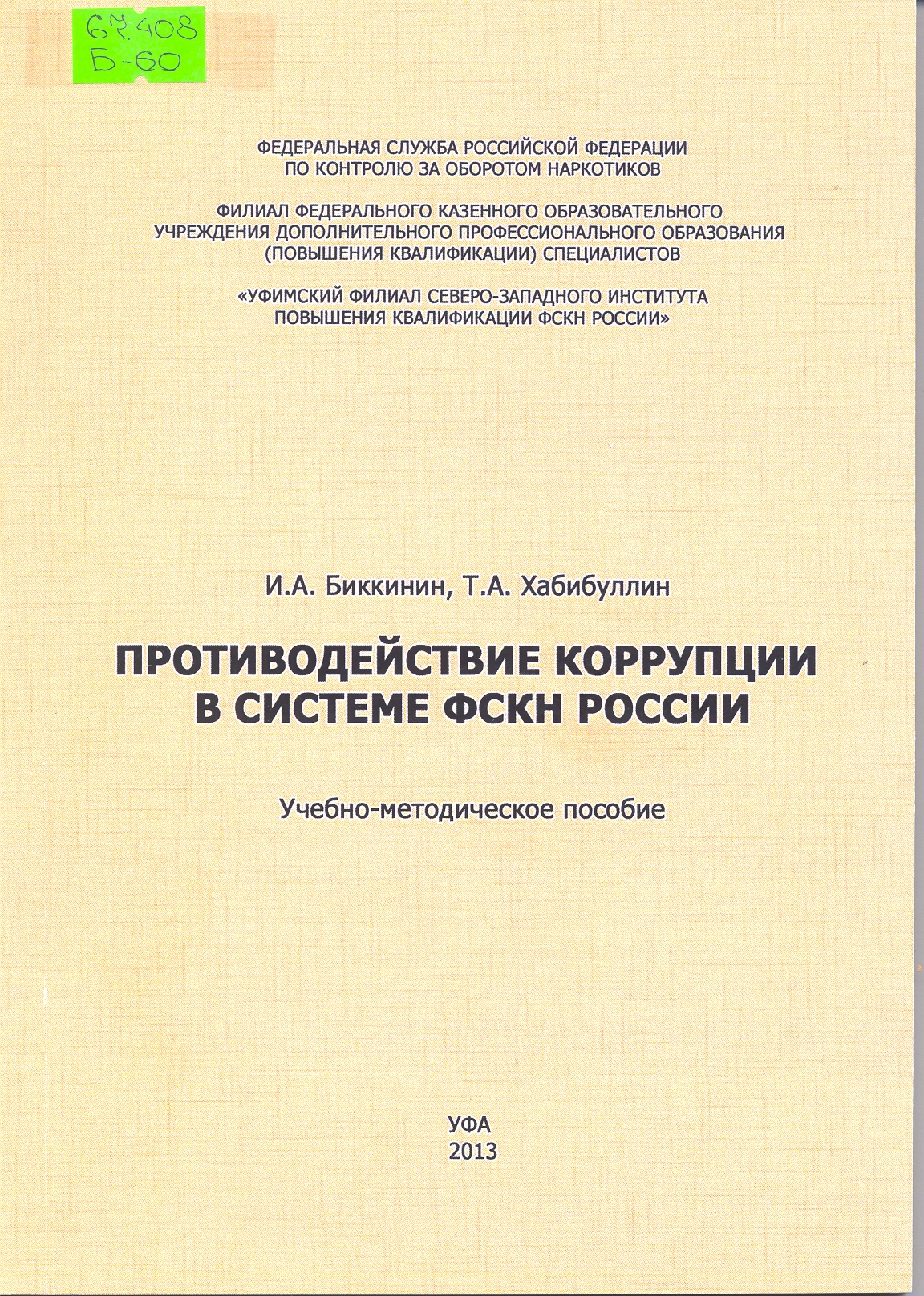 Противодействие коррупции в системе ФСКН России: учебно-методическое пособие