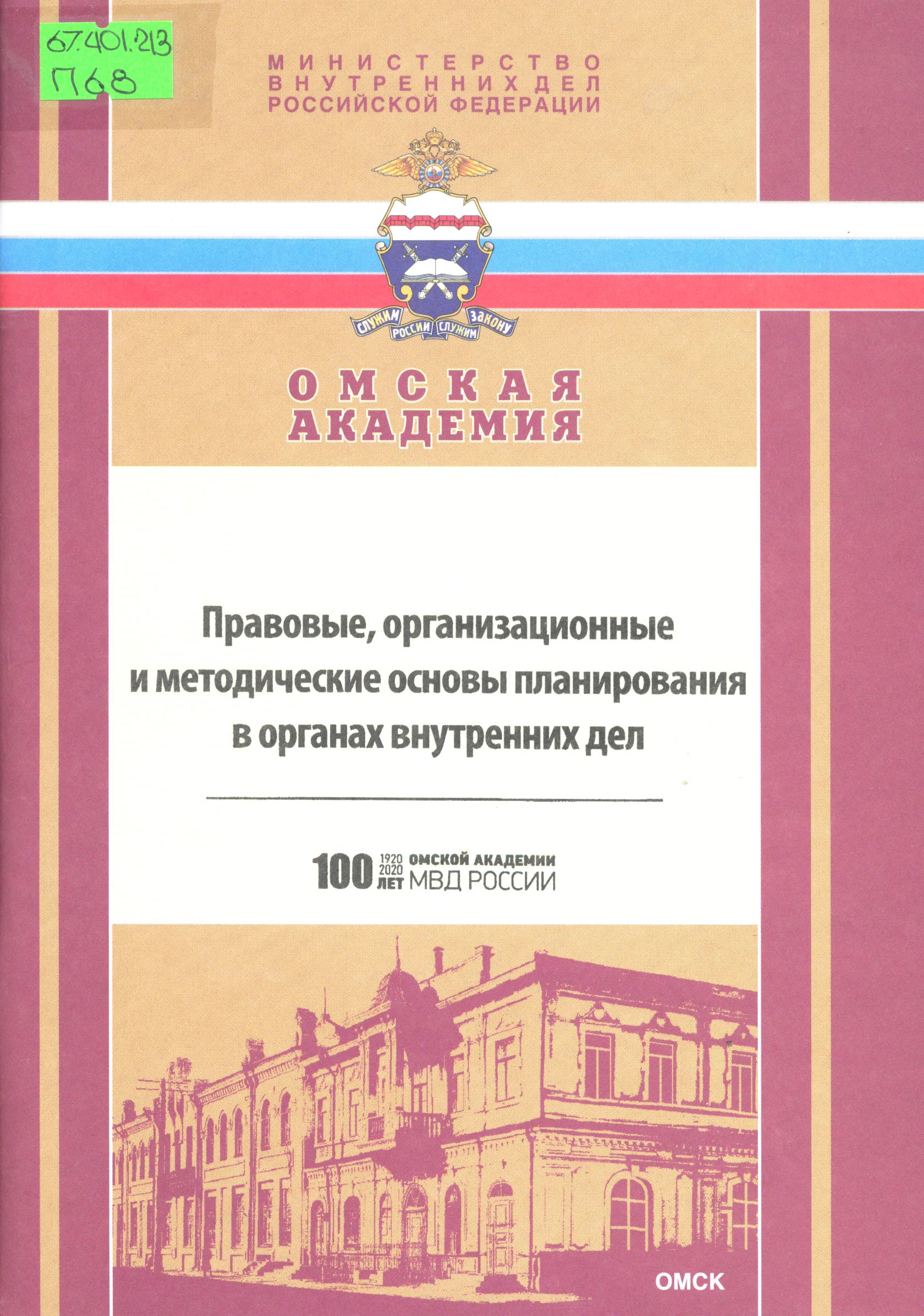 Правовые, организационные и методические основы планирования в органах внутренних дел: учебное пособие