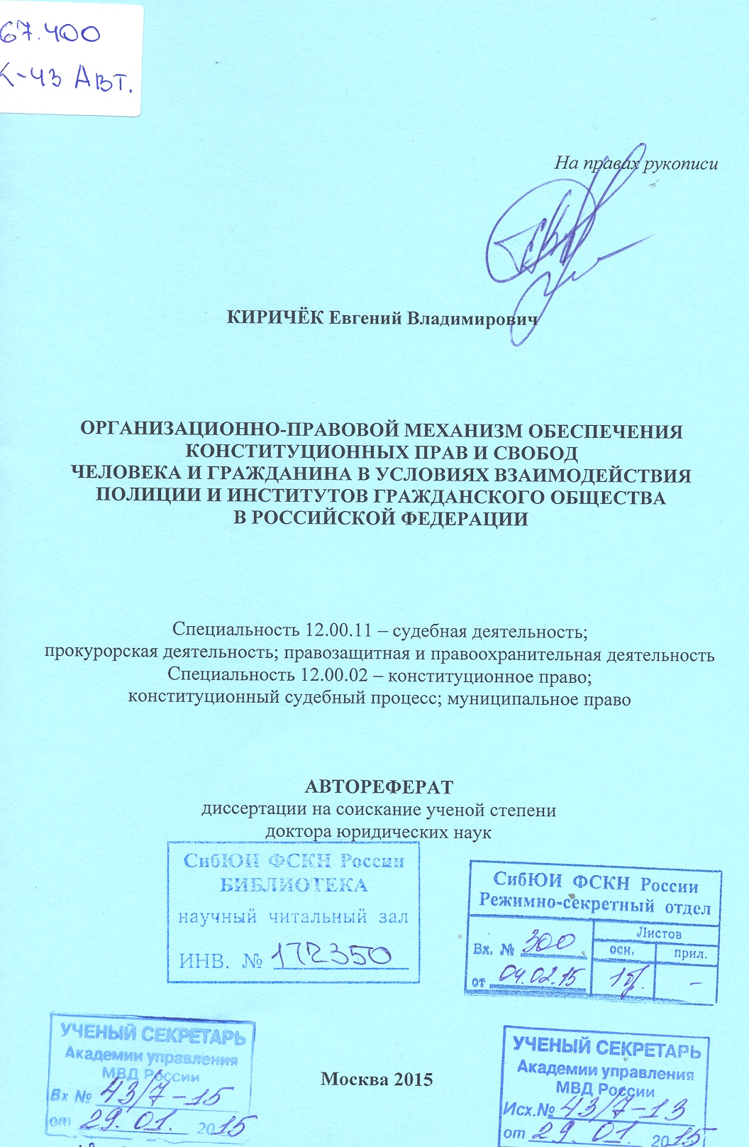 Академия управления МВД России, 2020 г.