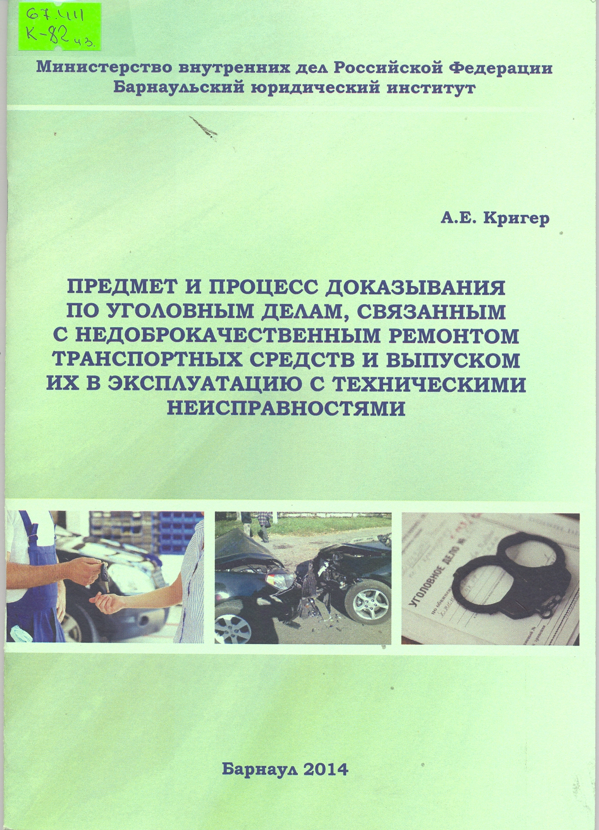 Предмет и процесс доказывания по уголовным делам, связанным с недоброкачественным ремонтом трансп...: учебное пособие