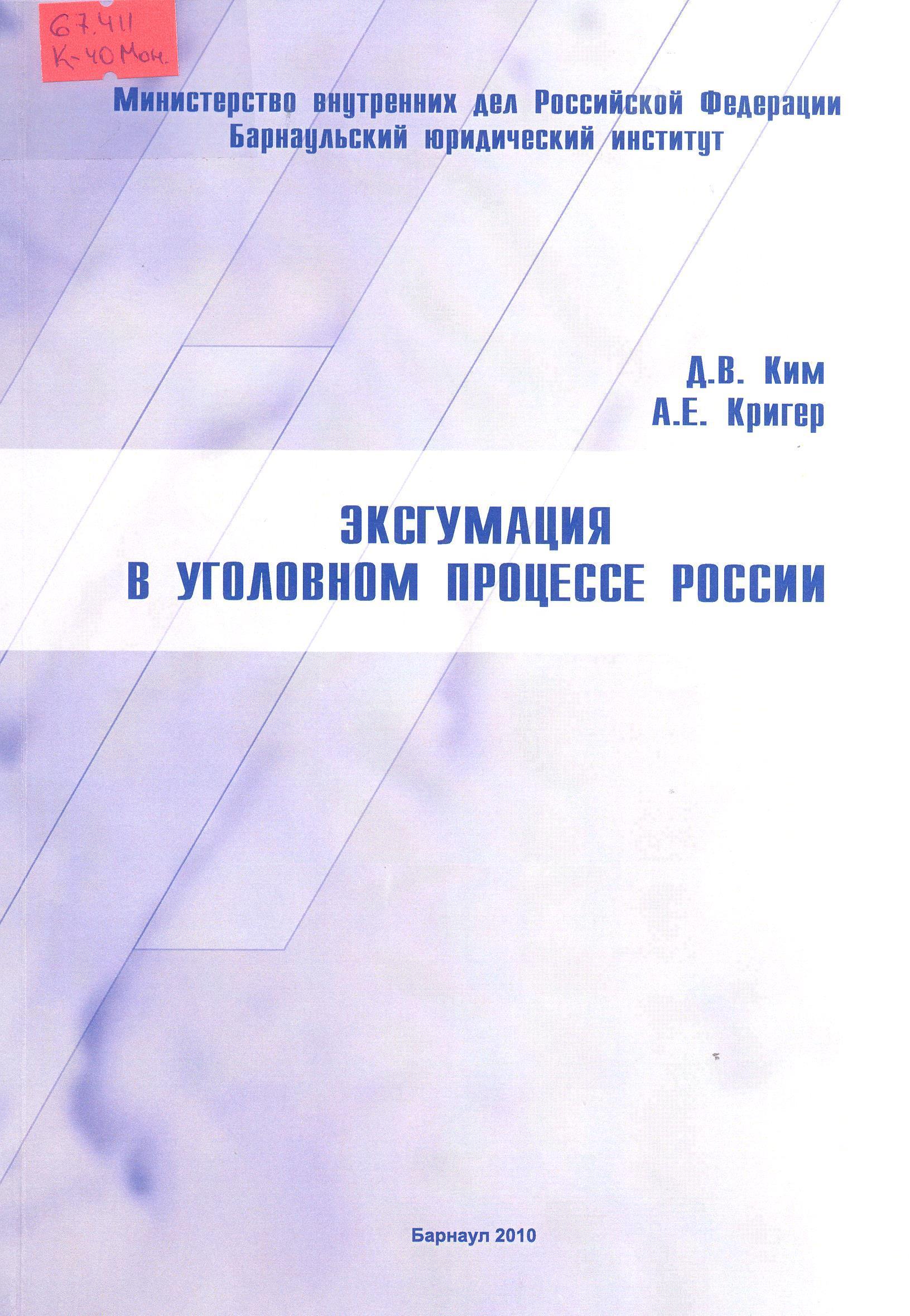 Эксгумация в уголовном процессе России: [Электронный ресурс]: монография