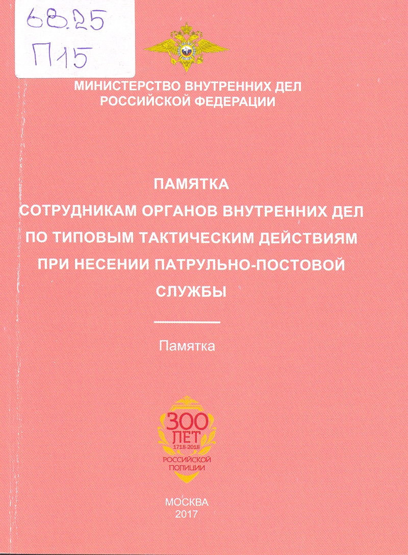 Памятка сотрудникам органов внутренних дел по типовым тактическим действиям при несении патрульно...: памятка