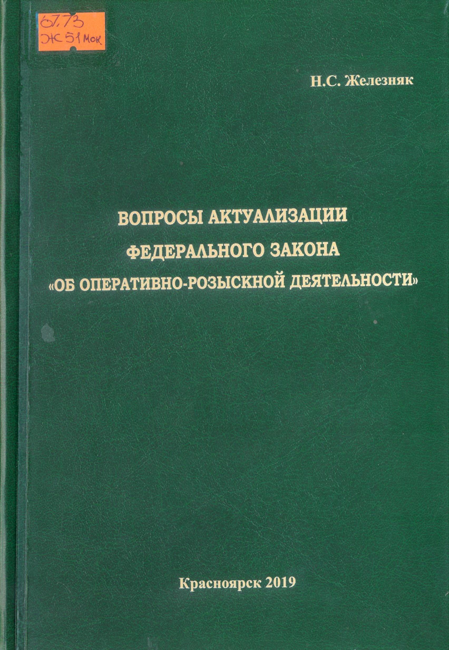 Вопросы актуализации Федерального закона "Об оперативно-розыскной деятельности": монография
