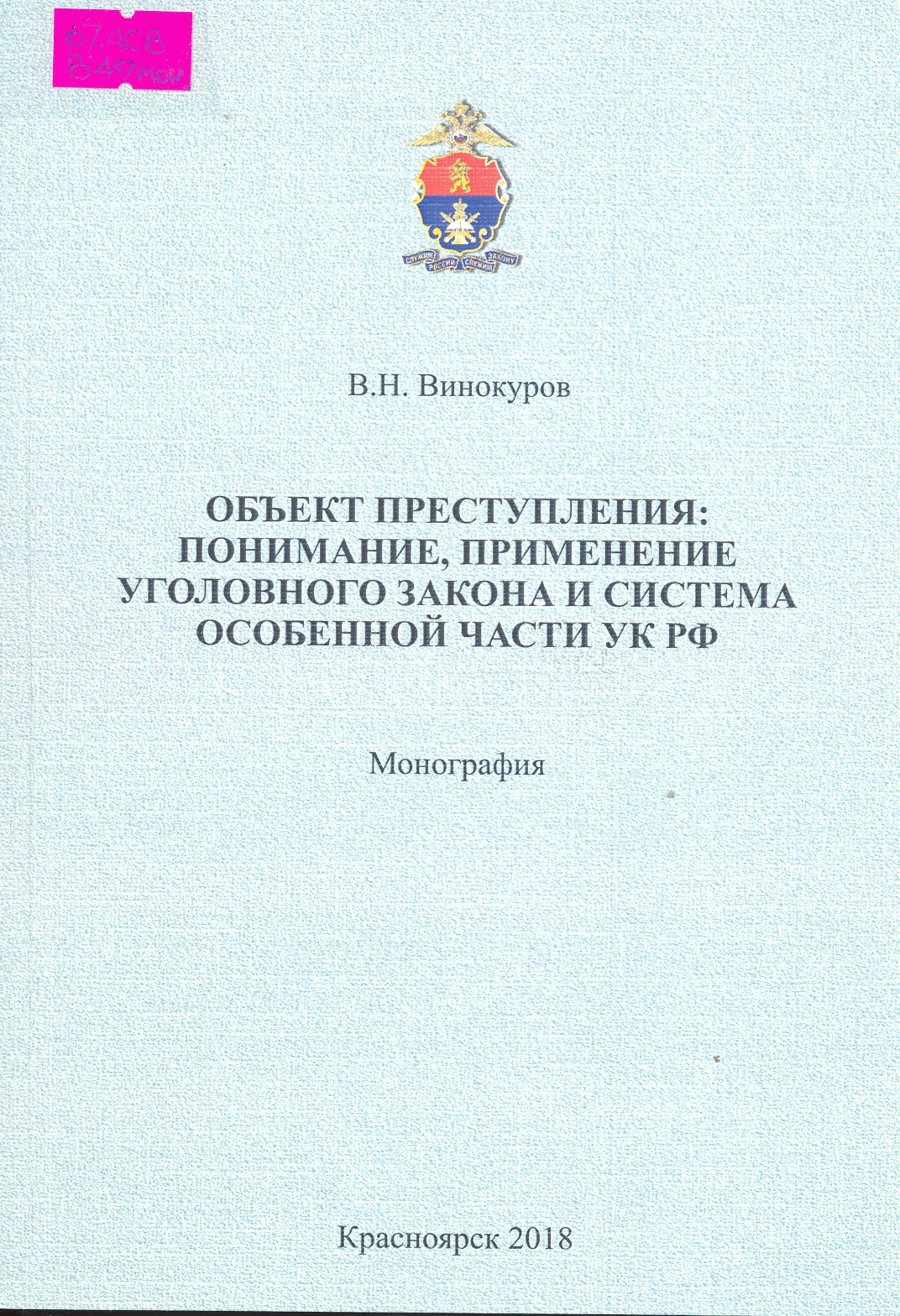 Объект преступления: понимание, применение уголовного закона и система Особенной части УК РФ : монография