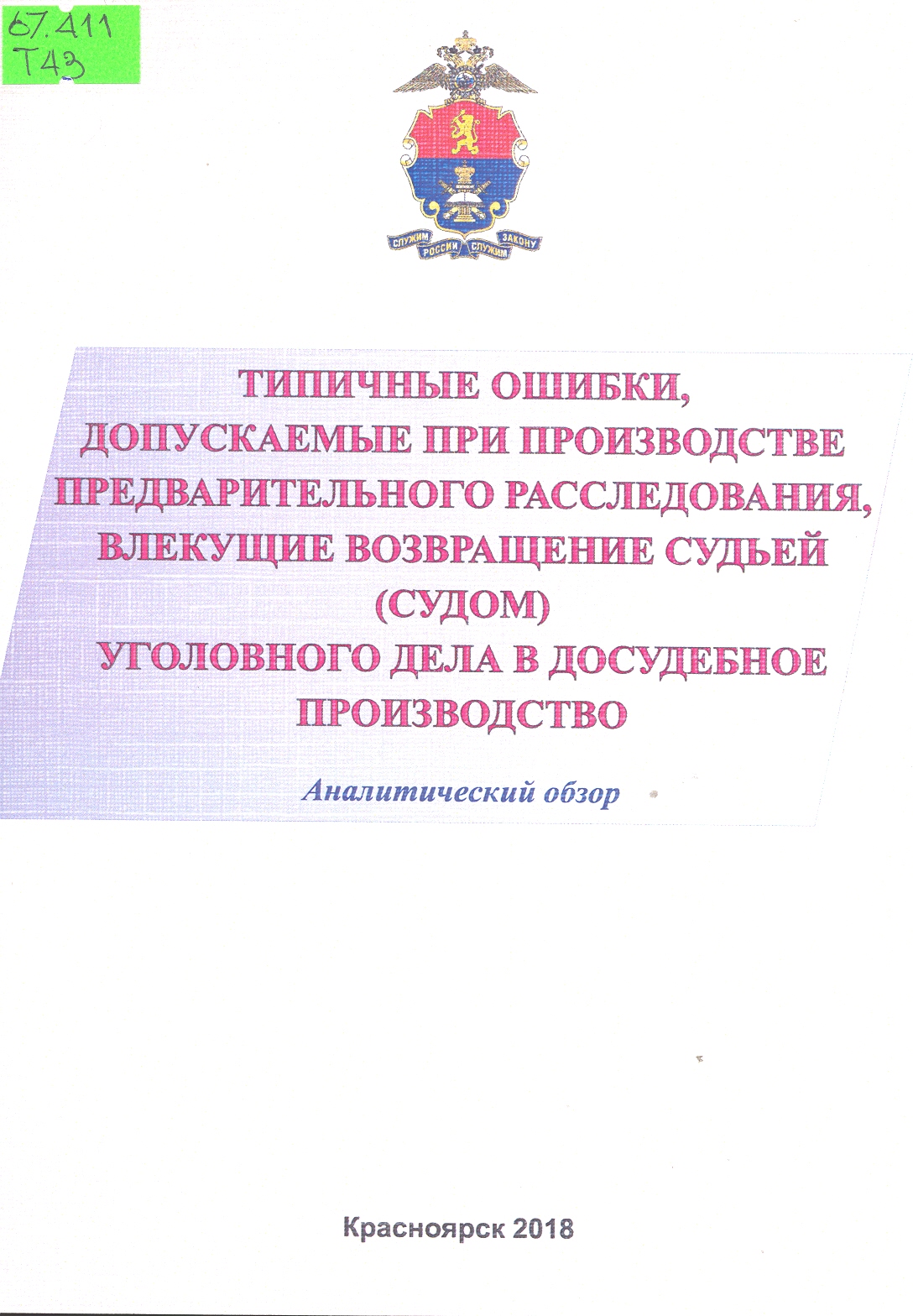 Типичные ошибки, допустимые при производстве предварительного расследования, влекущие возвращение...: аналитический обзор