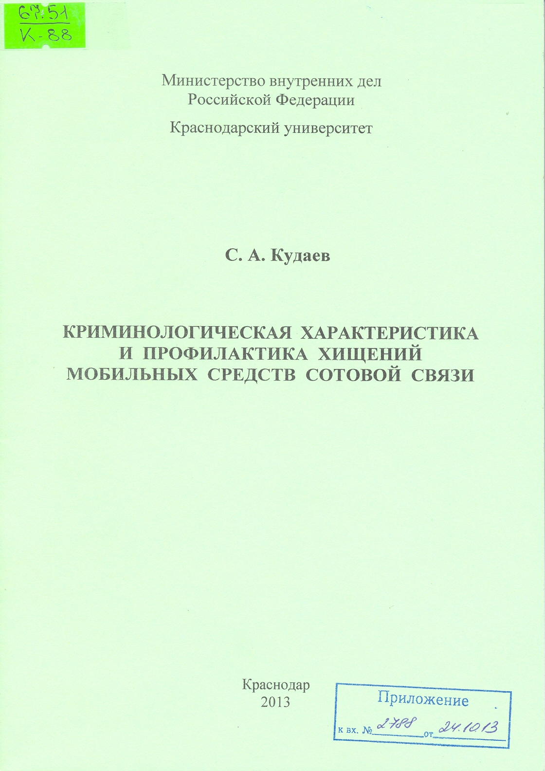 Криминологическая характеристика и профилактика хищений мобильных средств сотовой связи: учебное пособие