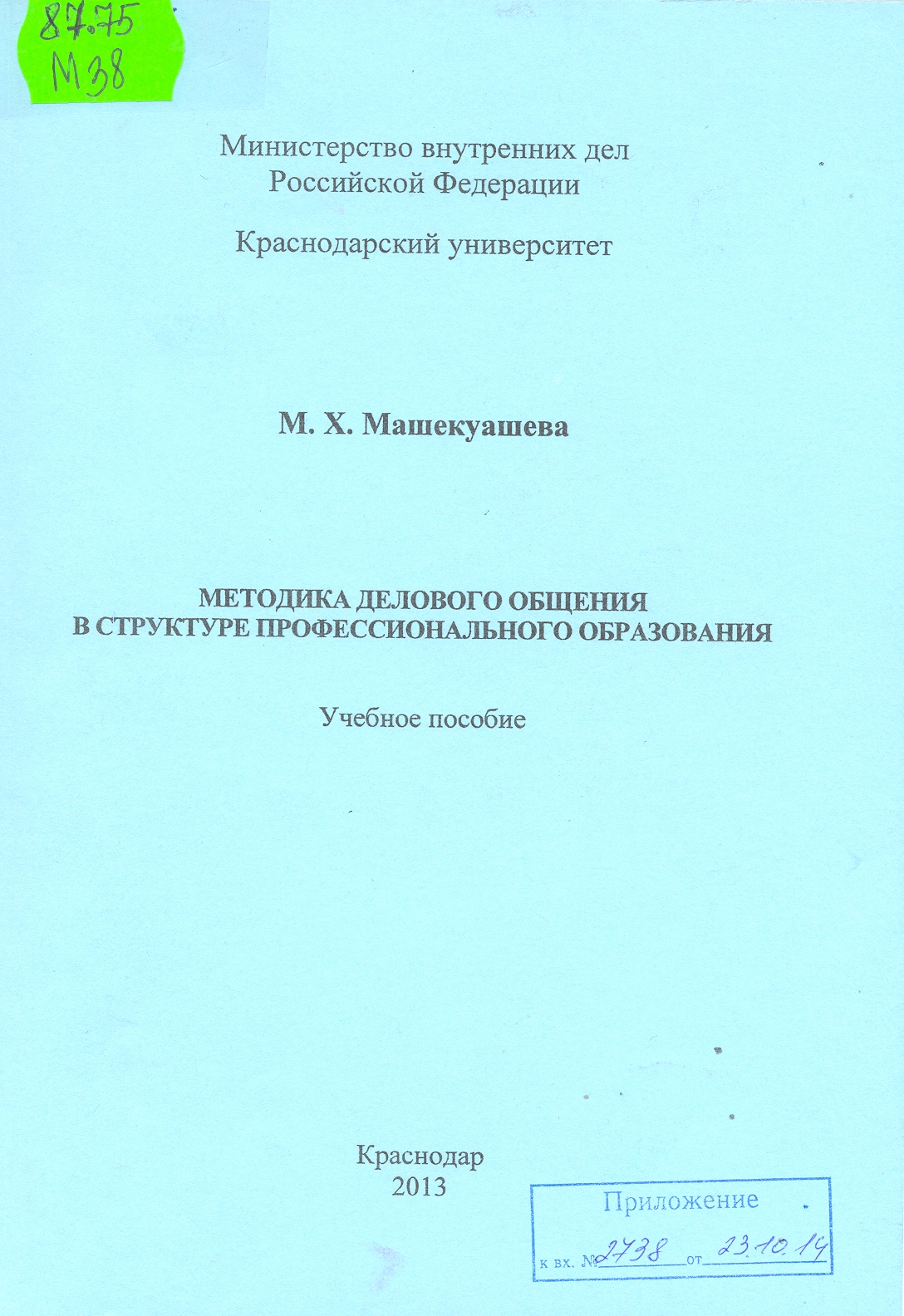 Методика делового общения в структуре профессионального образования: учебное пособие