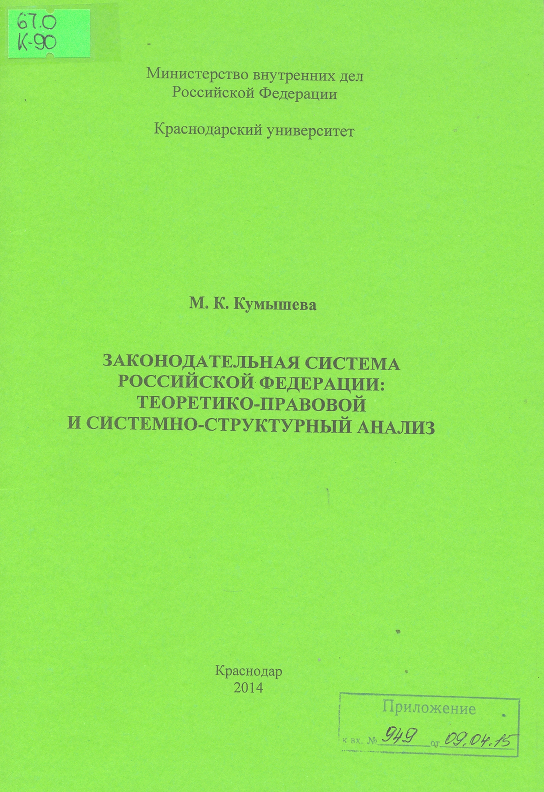 Законодательная система Российской Федерации : теоретико-правовой и системно-структурный анализ: учебное пособие
