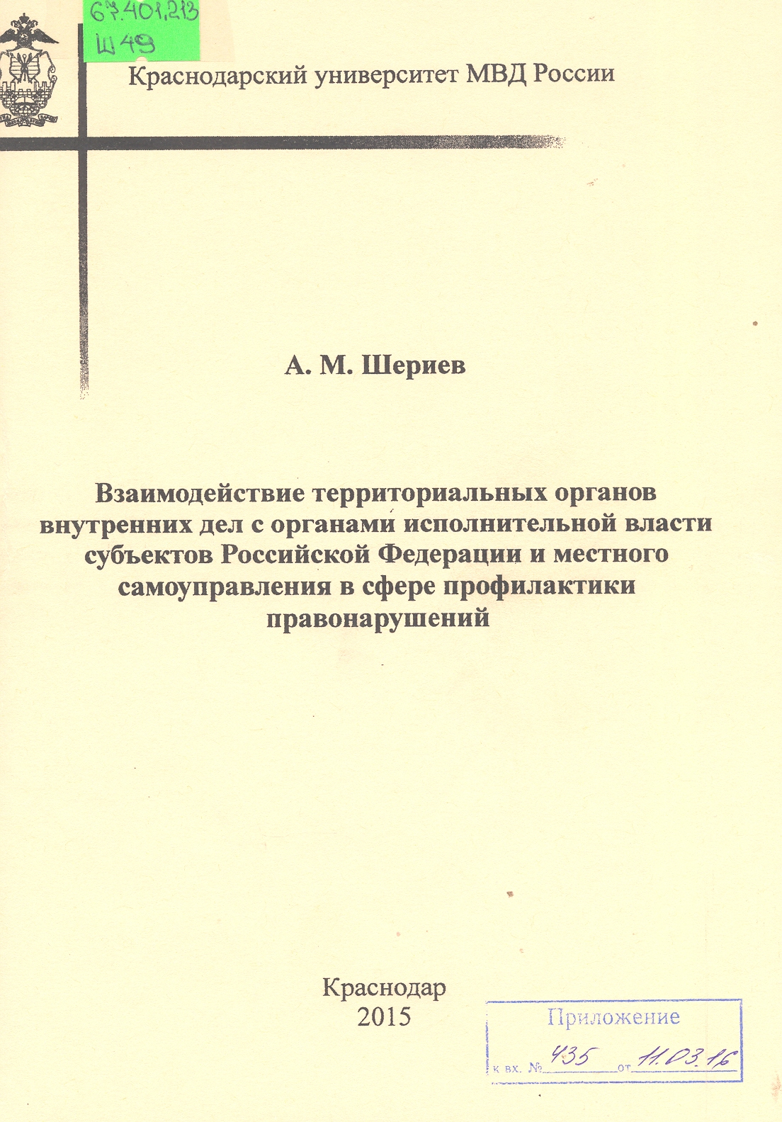 Взаимодействие территориальных органов внутренних дел с органами исполнительной власти субъектов ...: учебное пособие