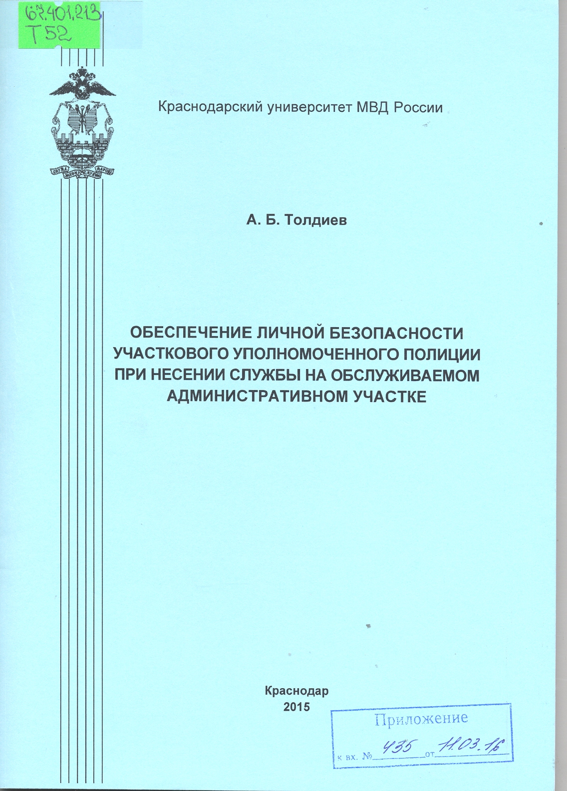 Обеспечение личной безопасности участкового уполномоченного полиции при несении службы на обслужи...: учебно-практическое пособие