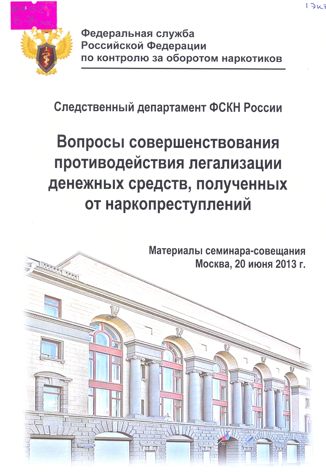 Вопросы совершенствования противодействия легализации денежных средств, полученных от наркопресту...: материалы семинара-совещания (Москва, 20 июня 2013г.)