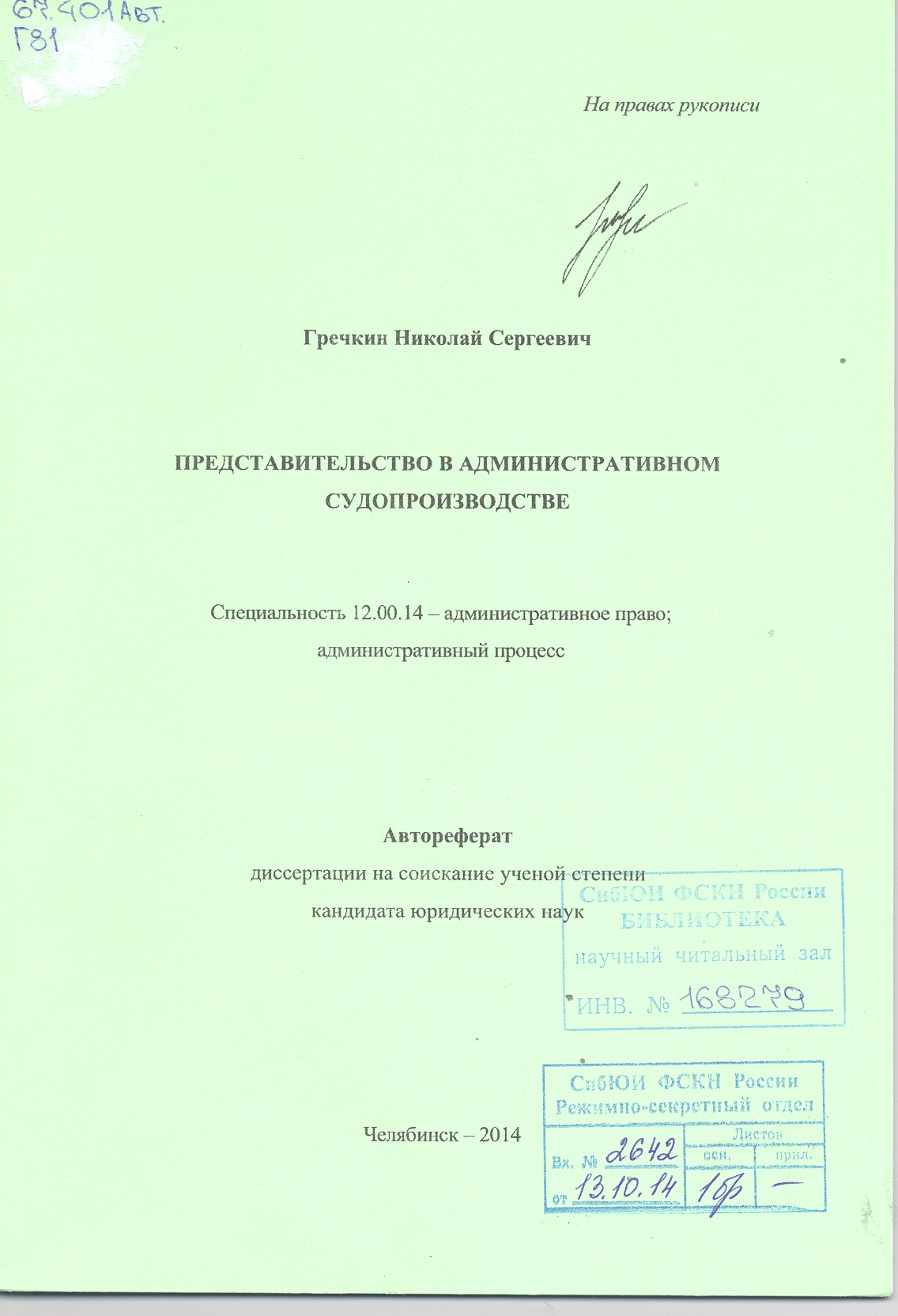 Представительство в административном судопроизводстве: автореферат : 12.00.14