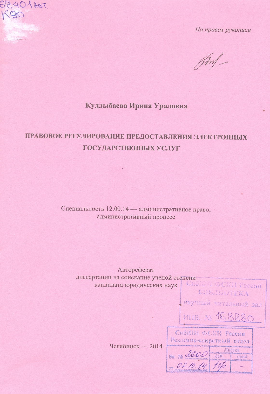 Правовое регулирование предоставления электронных государственных услуг: автореферат : 12.00.14
