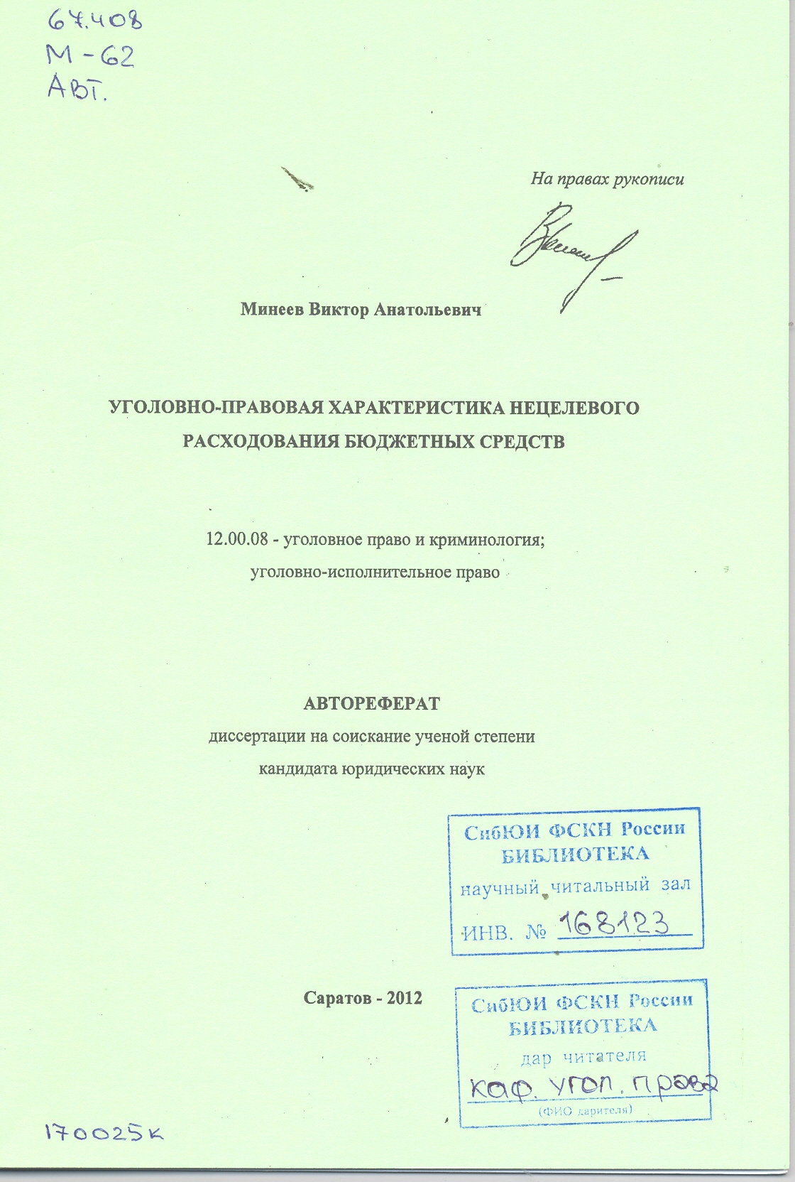 Уголовно-правовая характеристика нецелевого расходования бюджетных средств: автореферат: 12.00.08