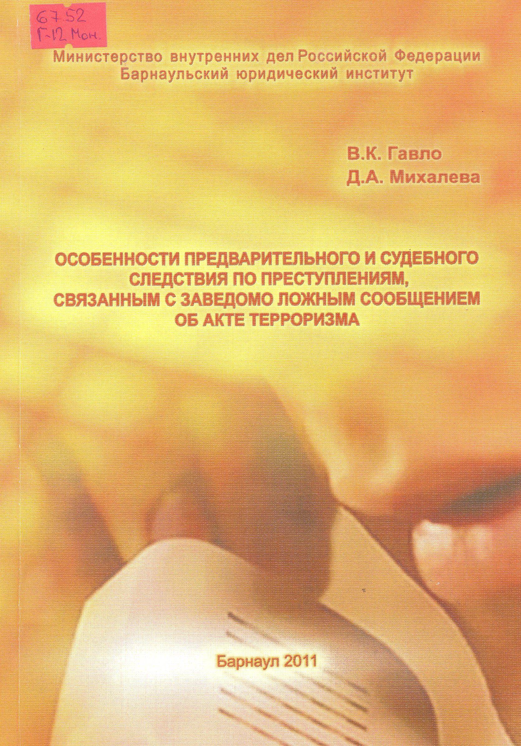 Особенности предварительного и судебного следствия по преступлениям, связанным с заведомо ложным ...: монография