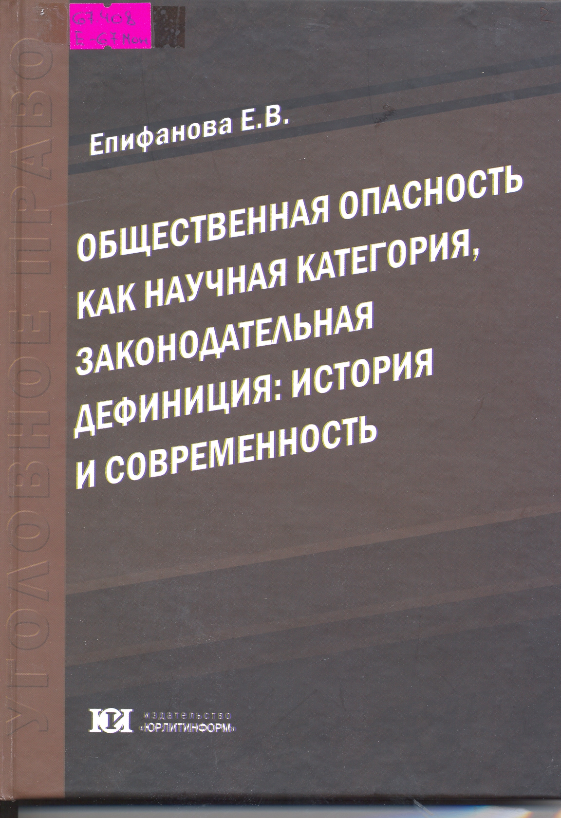 Общественная опасность как научная категория, законодательная дефиниция:история и современность: монография