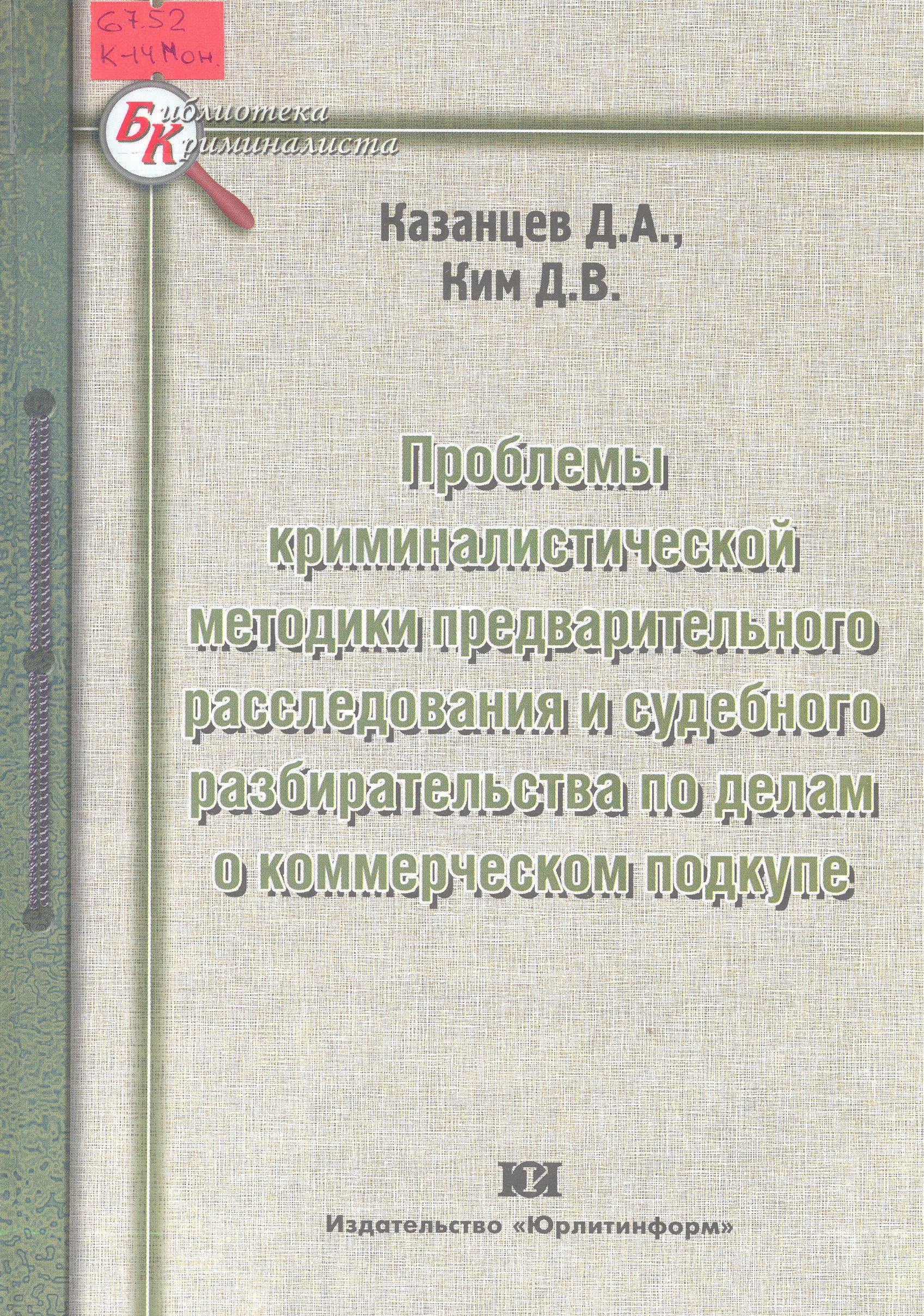 Проблемы криминалистической методики предварительного расследования и судебного разбирательства п...: монография