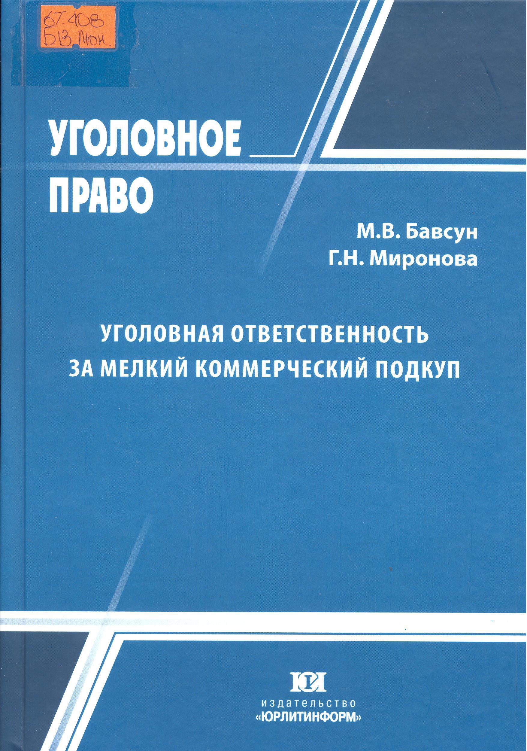 Уголовная ответственность за мелкий коммерческий подкуп: монография