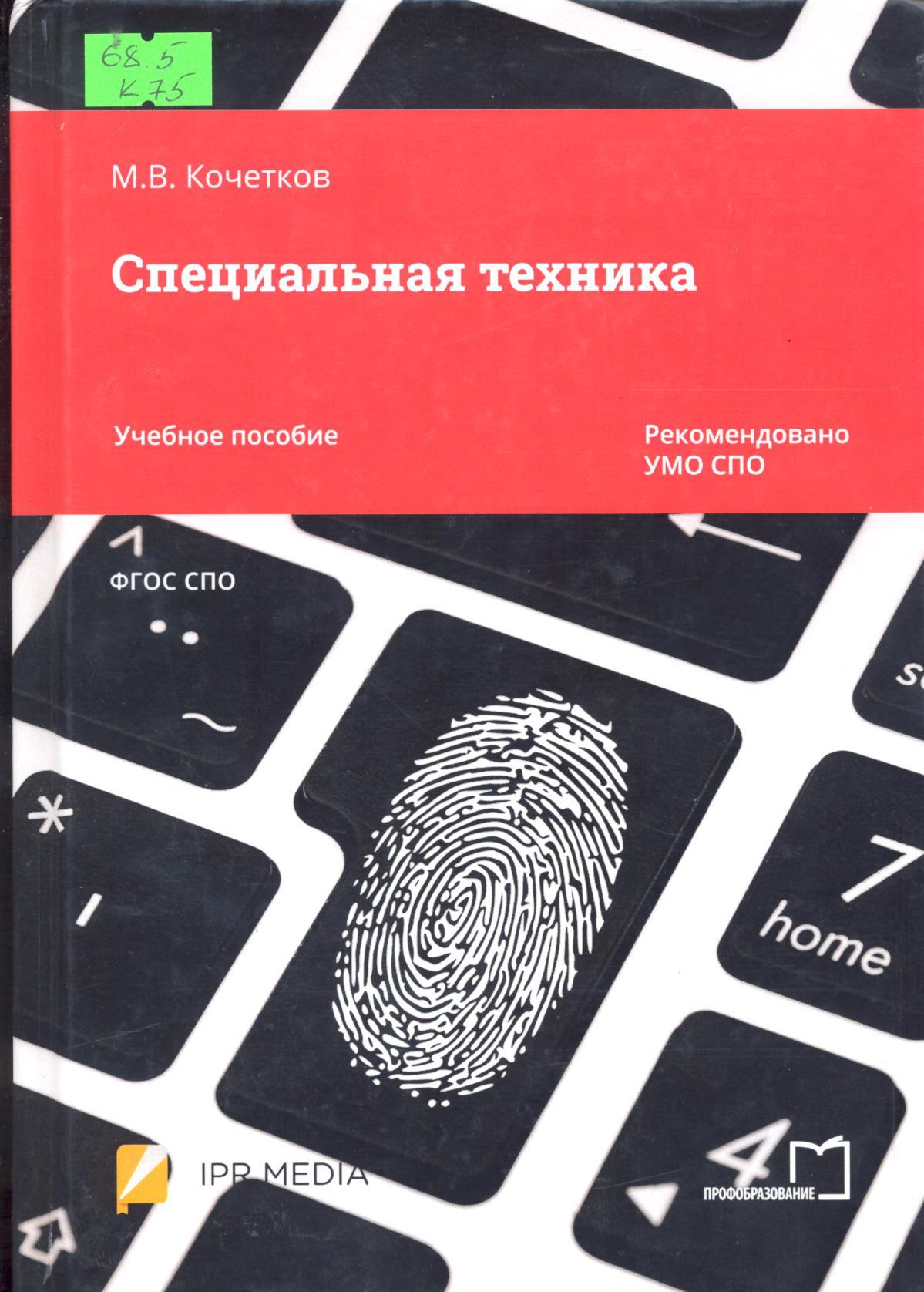 Специальная техника: учебное пособие: рекомендовано УМО СПО в качестве учебного пособия для использования в учебном процессе образовательными учреждениями по специальности 40.02.02 "Правоохран...