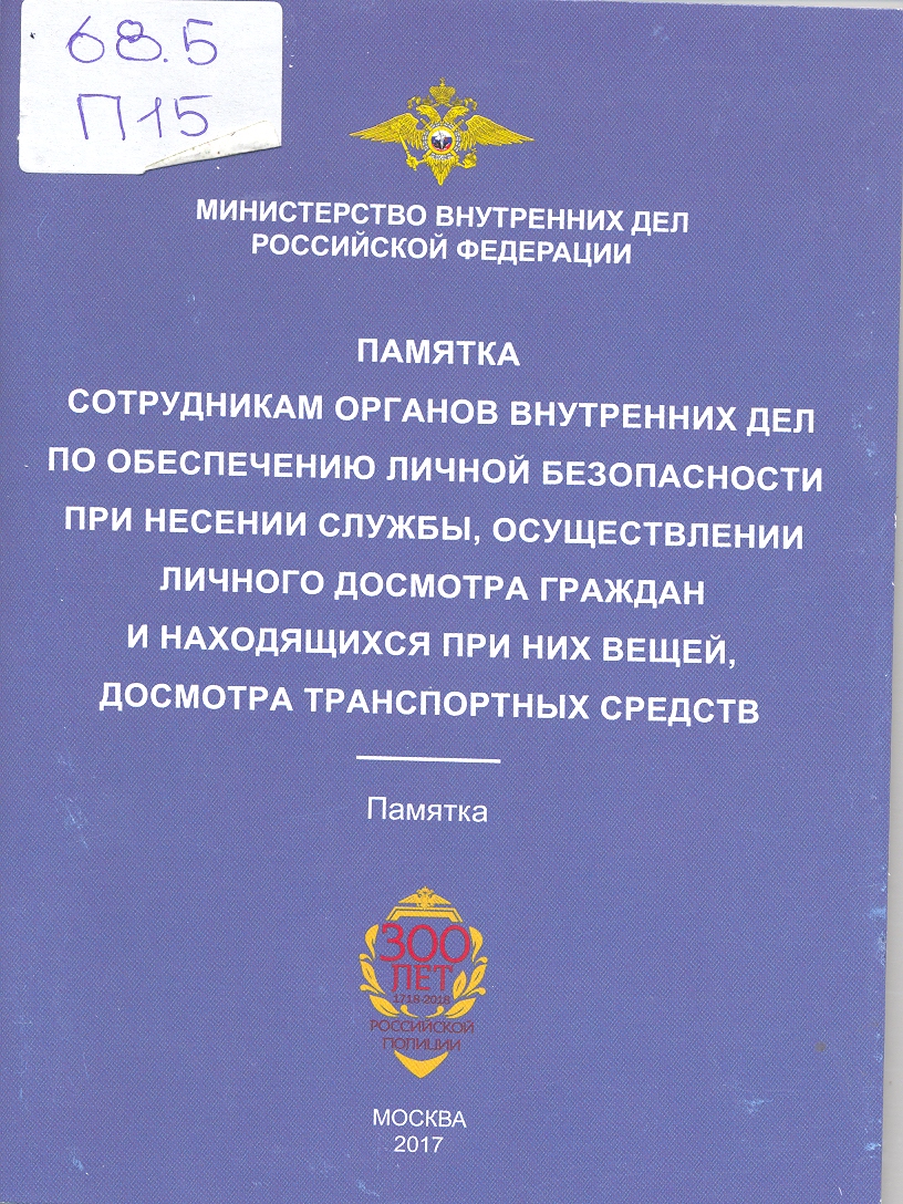 Памятка сотрудникам органов внутренних дел по обеспечению личной безопасности при несении службы,...: памятка