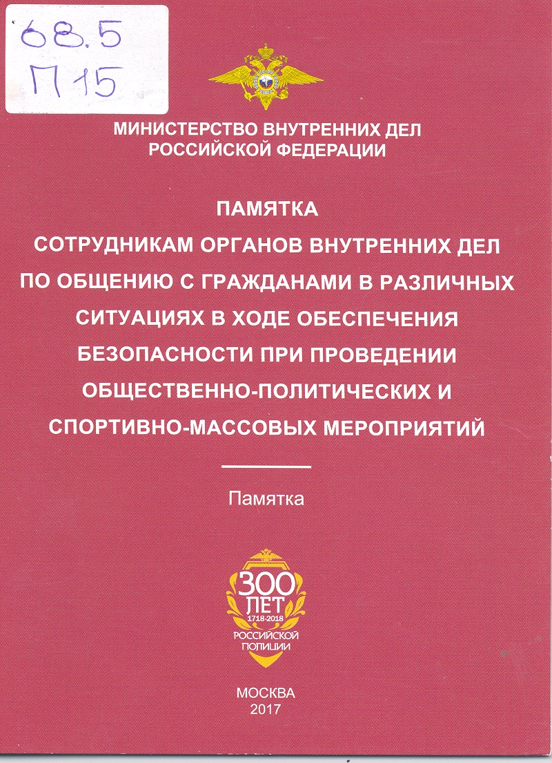 Памятка для сотрудников органов внутренних дел Российской Федерации по предупреждению и разрешени...: памятка