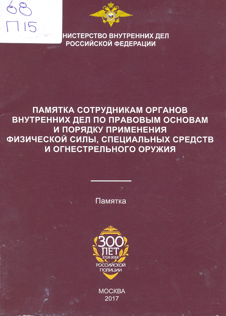 Памятка сотрудникам органов внутренних дел по правовым основам и порядку применения физической си...: памятка