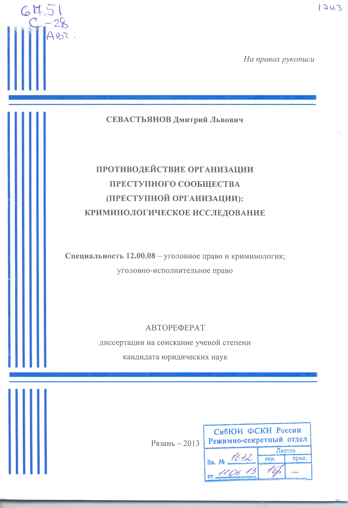 Социальные патологии как объект криминологического исследования: выпускная квалификационная работа