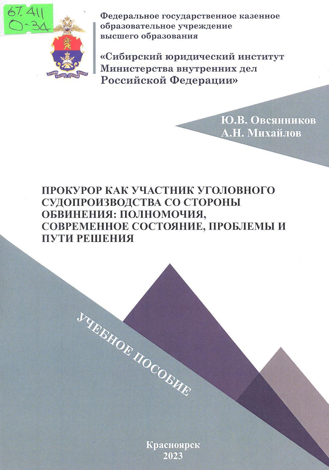 Прокурор как участник уголовного судопроизводства со стороны обвинения: полномочия, современное с...: учебное пособие